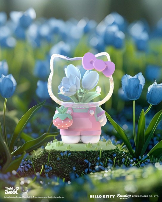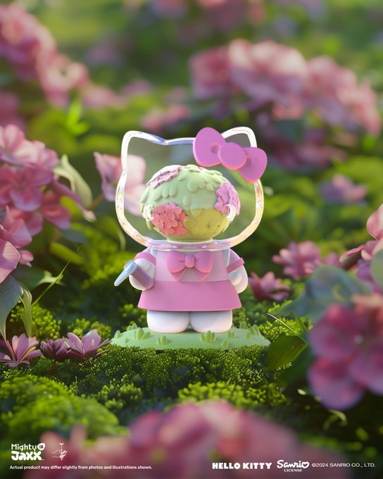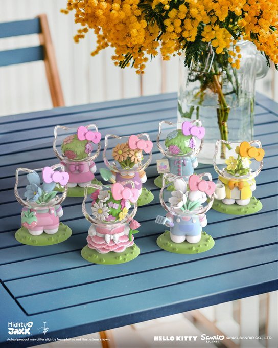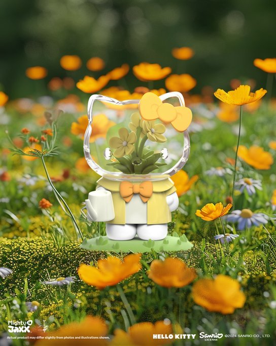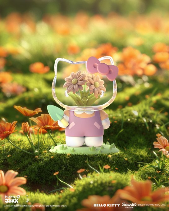 與日本花卉藝術家東信(Azuma Makoto)、三麗鷗明星攜手的Hello Kitty 盒玩,看可愛的 Hello Kitty 穿著各種服裝、手拿著園藝工具,細心照料小花卉天堂~透明的頭部理面盛開著繡球花、鬱金香、玻斯菊等繽紛的花朵,浪漫又療癒!