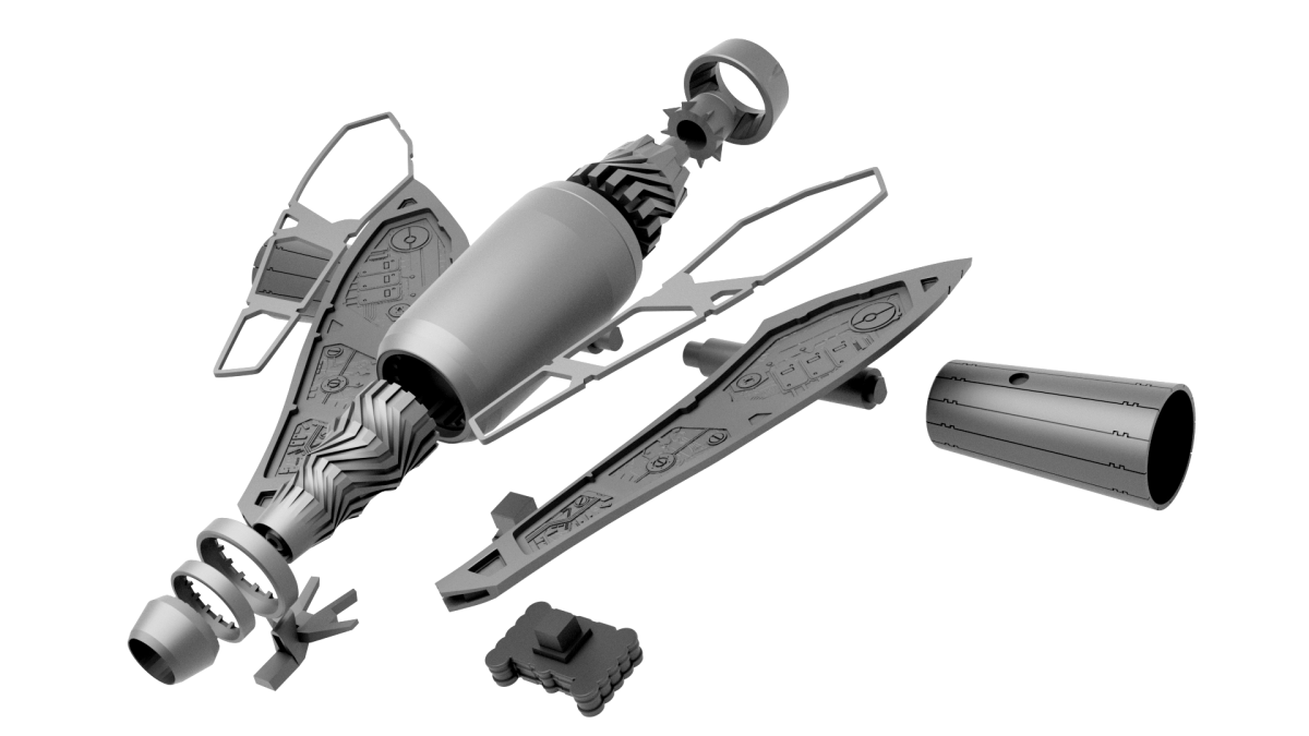 於是參考設定集跟遊戲裡的推進器外觀建模,