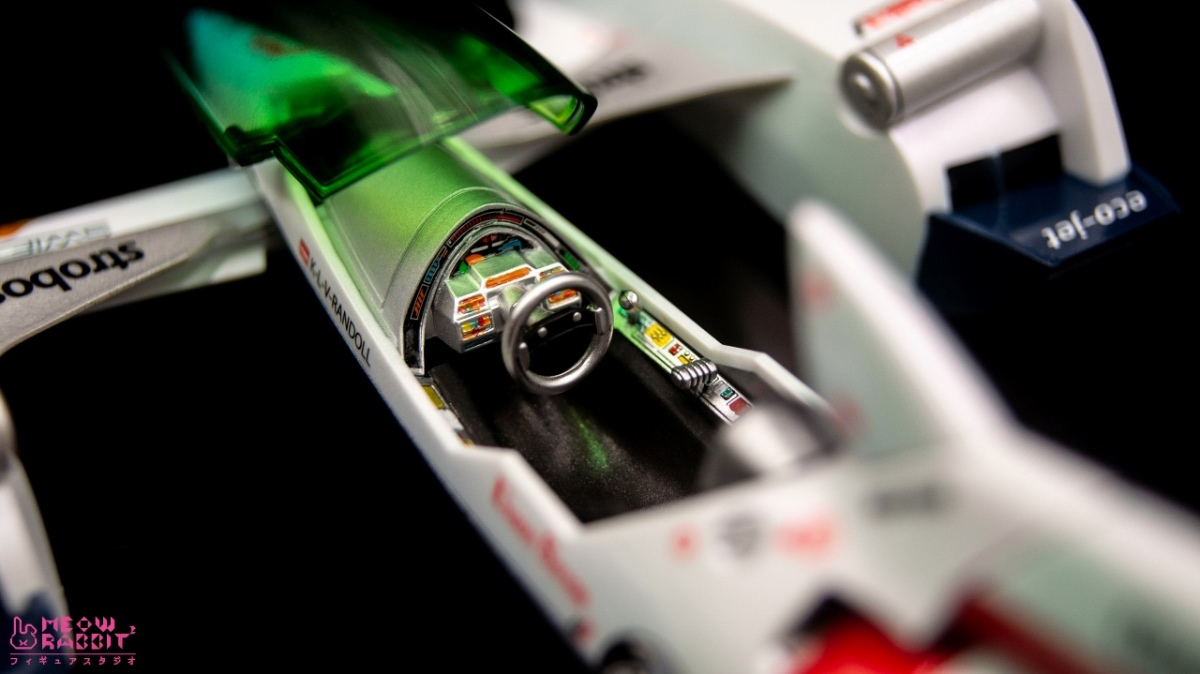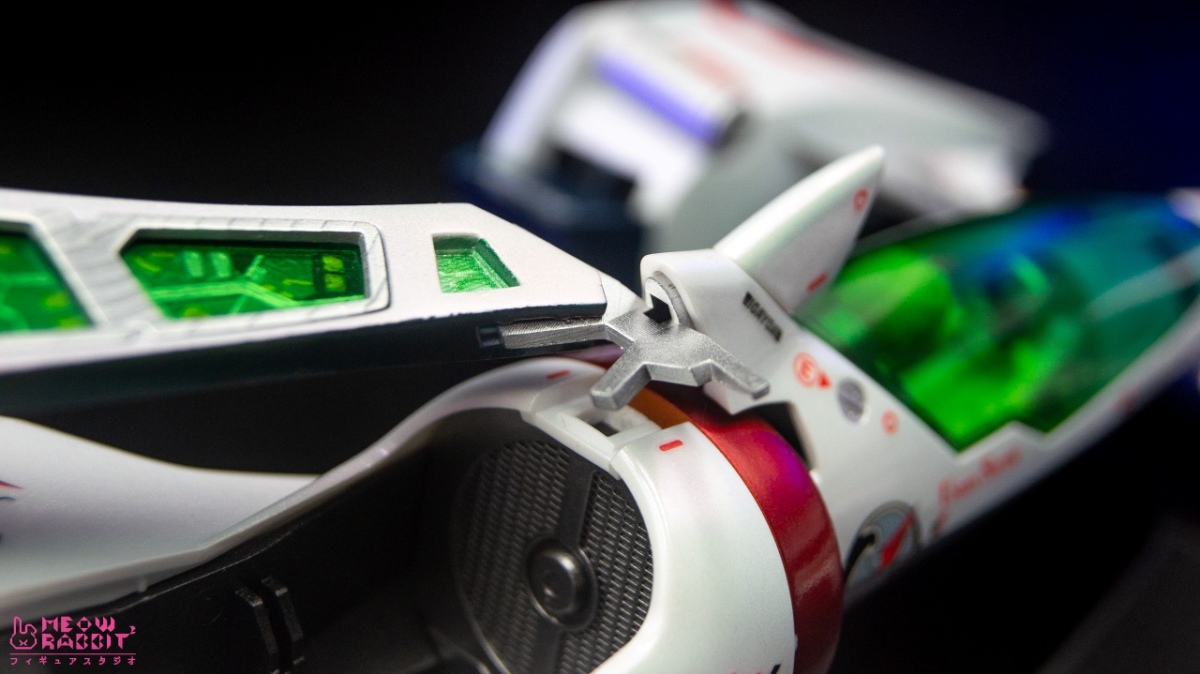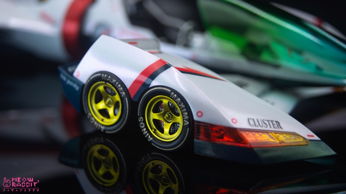 ▲推進器、前後擾流板以珍珠白銀噴色,整體大面積車殼則使用白底幻彩紫、綠做分色,