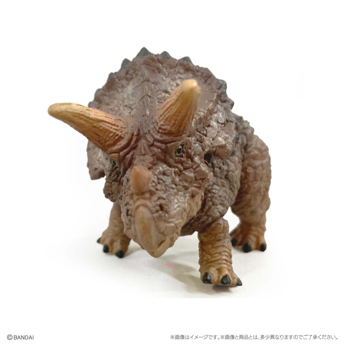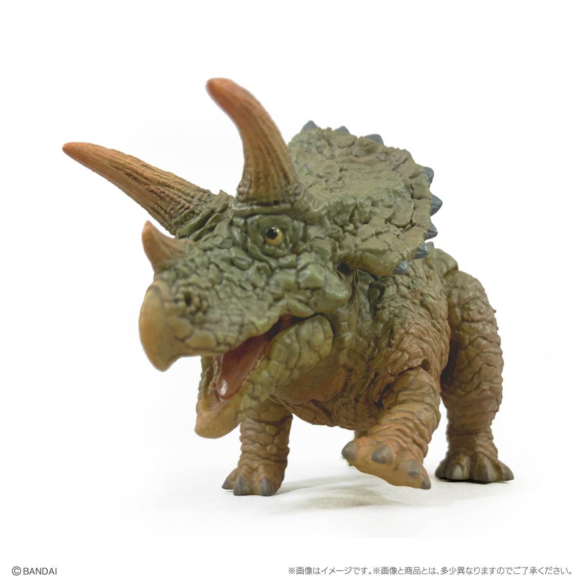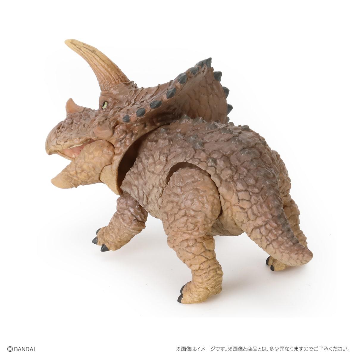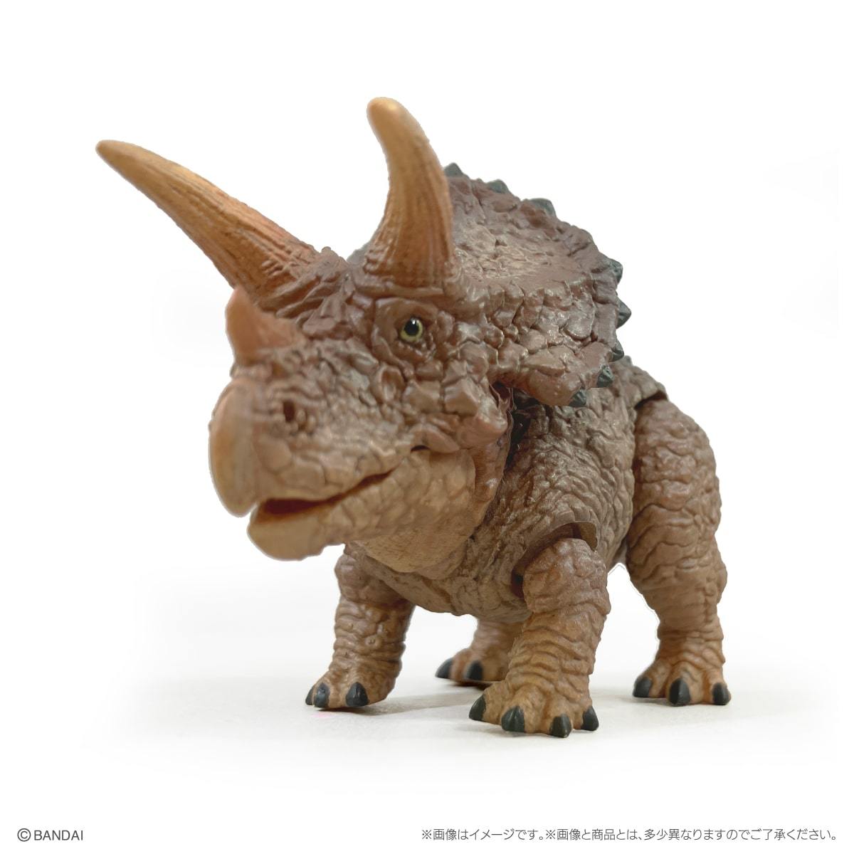 這次在「生物大圖鑑Repti」系列立體化的恐龍是由擅長刻畫動物與怪獸的日本原型師&造型作家黏土星人(ねんど星人)操刀原型與色彩,將我們最熟悉的霸王龍、三角龍以 Q 版比例重新詮釋,並在 8~10.5 公分的掌中尺寸裡注入大量寫實的生物細節刻畫,體表的硬皮質感、漸層色的描繪都十分出色,而且這些小小的恐龍更結合了可動設計,包含下顎、四肢、尾巴等,霸王龍一共有 9 處可動、三角龍則是 6 處,可以擺出躍動的可愛造型。
