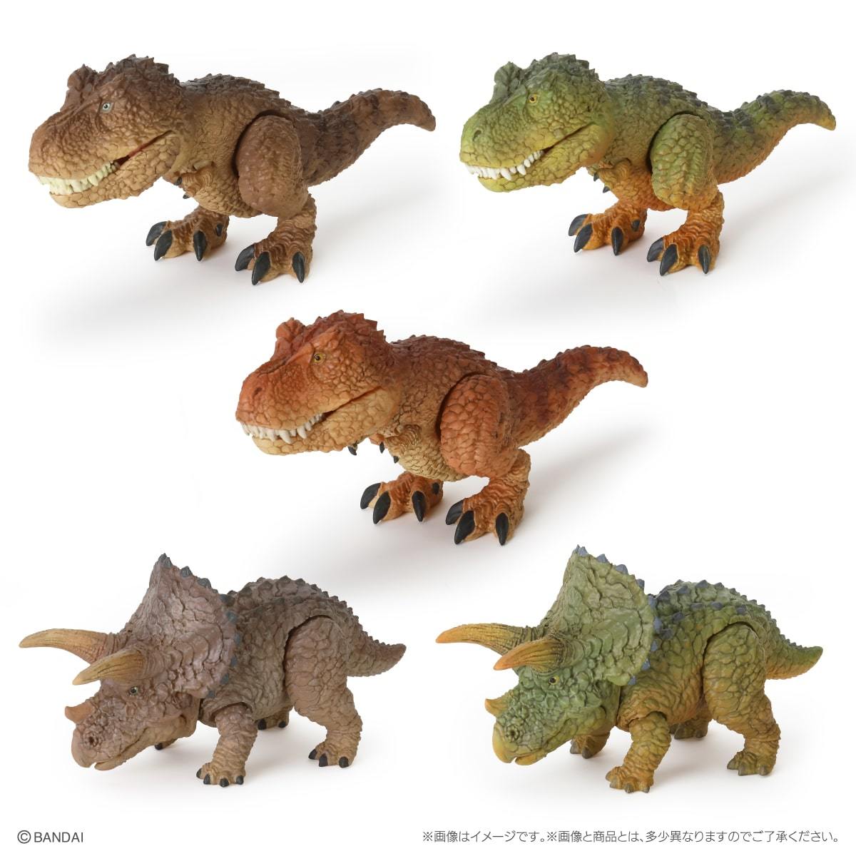 這次的「生物大圖鑑Repti 恐龍」一共有五種款式可以收集,包含三色(light、dark、green)的霸王龍跟兩色(dark、green)的三角龍。