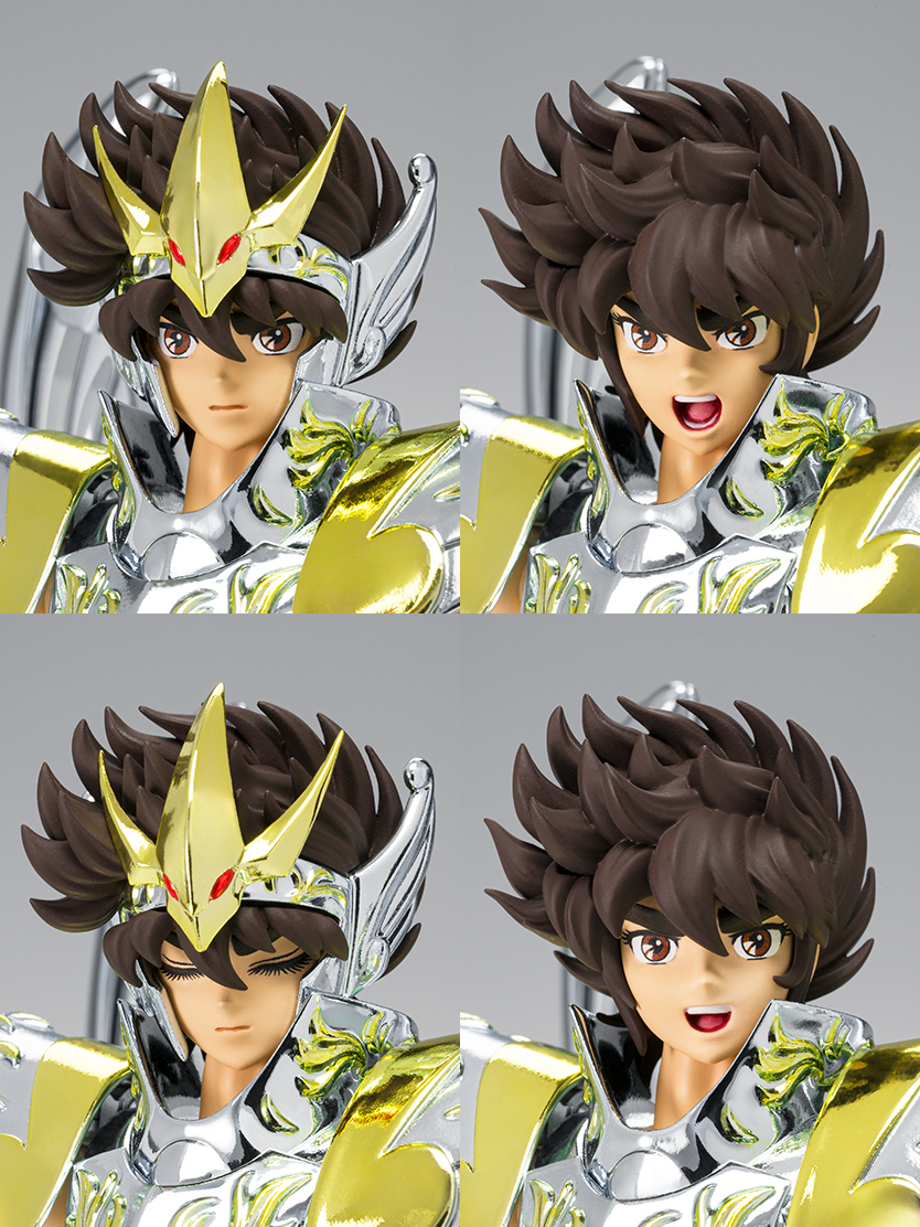 在身形比例、保持力、重量感均進行調整,整體達到更好的質感;配色也更新改良,讓神聖衣的銀色色澤更為閃亮。另外,臉部零件也煥然一新,包括普通臉、吶喊臉、閉眼臉、笑臉等豐富的表情;搭配替換手勢、戰損聖衣替換零件與另售的女神雅典娜&城戶沙織套組,重現劇中經典場景!與系列相同,也可以組裝還原聖衣型態。