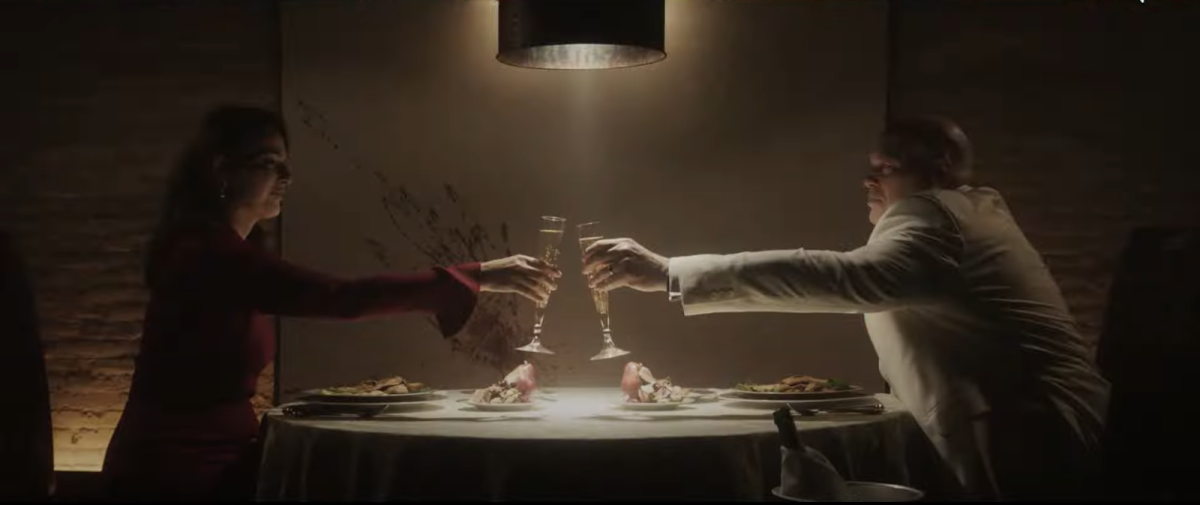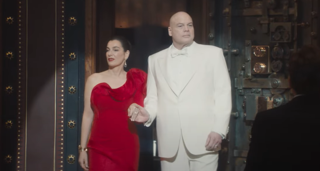 預告還能看見金霸王和凡妮莎共進晚餐,背後是那副《暴風雪中的兔子》畫作,還沾有他在原劇第三季結局被夜魔俠爆揍後留下的血漬。透過這一幕,漫威正式地宣告《夜魔俠:重生》與 Netflix 系列的無縫接軌。