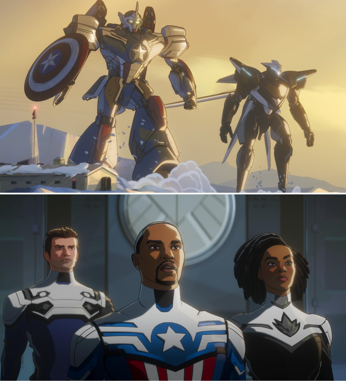 在早前釋出的劇照中,我們能看到這座「美國隊長」機器人將和另一座銀、黑色的機器人並肩作戰。而駕駛這兩座機器人的應該就是「美國隊長」山姆、巴奇和「光子」莫妮卡藍博。
