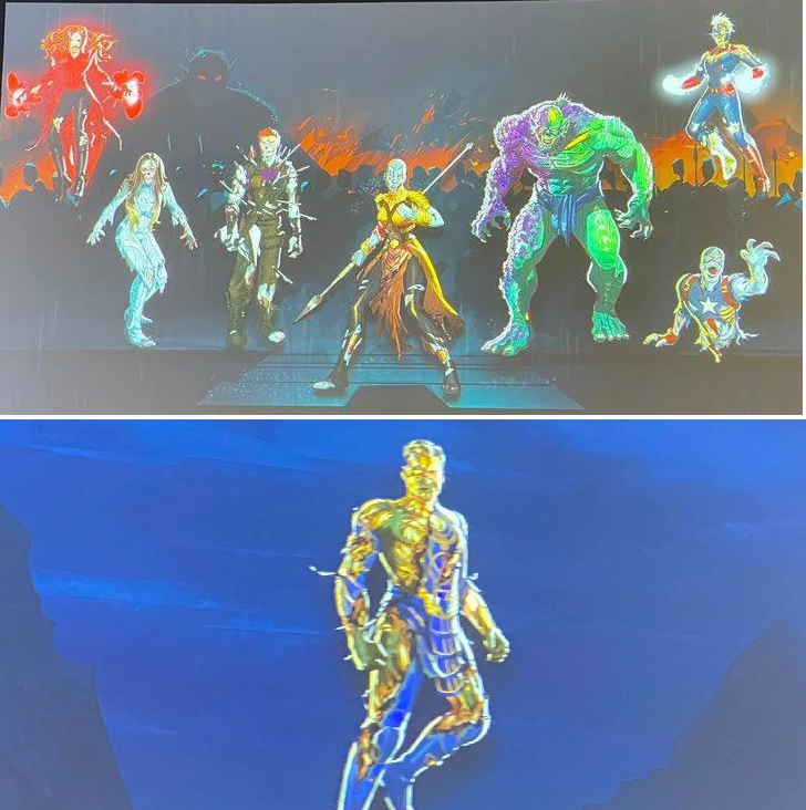 預告一開始以《死侍與金鋼狼》「TVA」的片段結合漫威 2024 年年末至 2025 年一整年即將推出的作品錄像。上方三個較大的螢幕,播放的分別是《鋼鐵心》、《夜魔俠:重生》與《神力人》的片段。下方則有《蜘蛛人:善良好鄰居》、《瓦干達之眼》和《神力人》等劇片段。