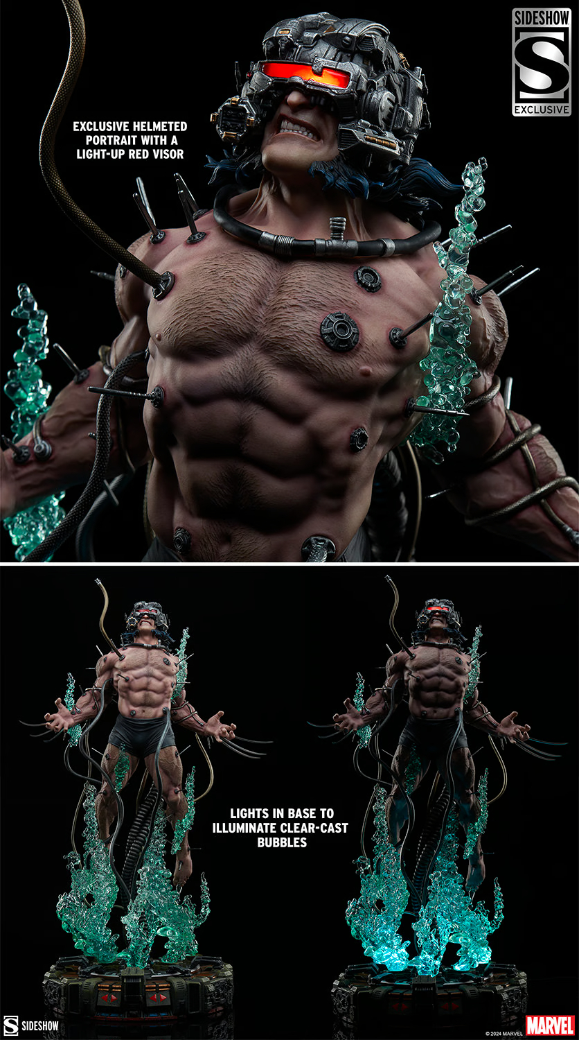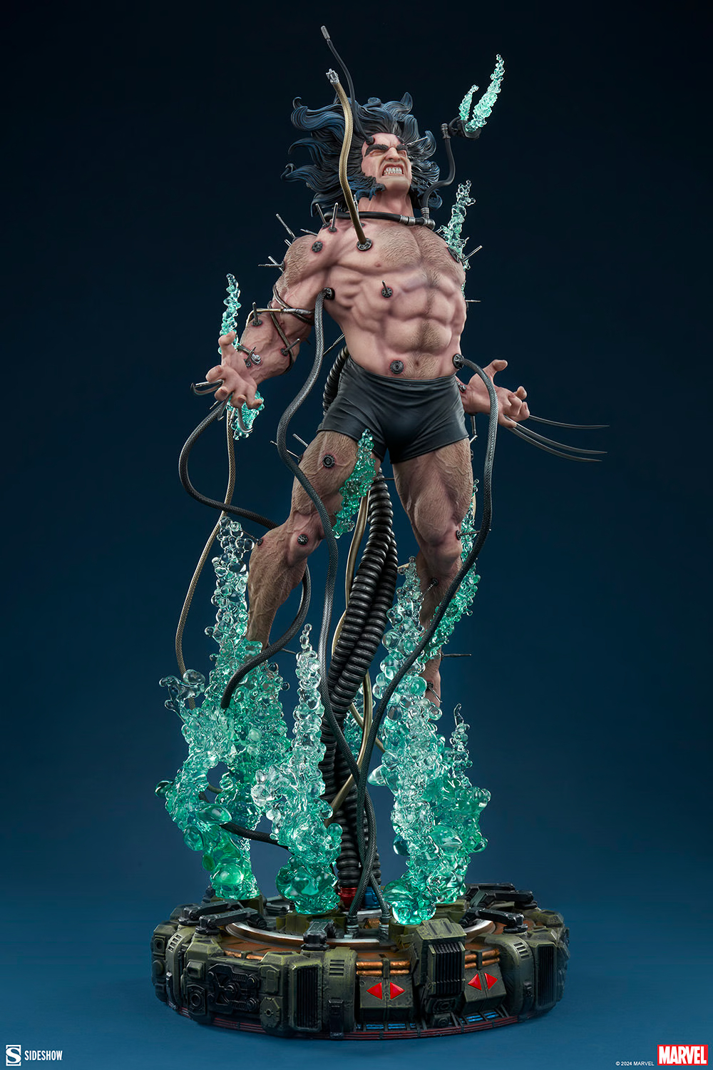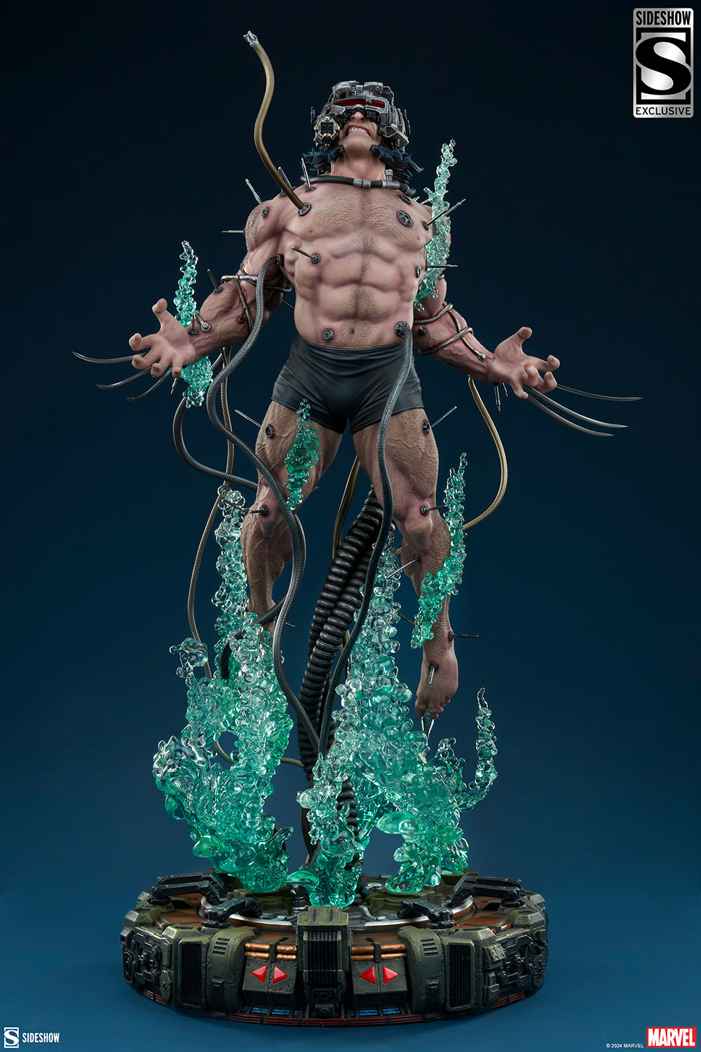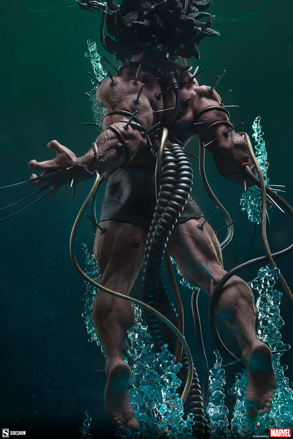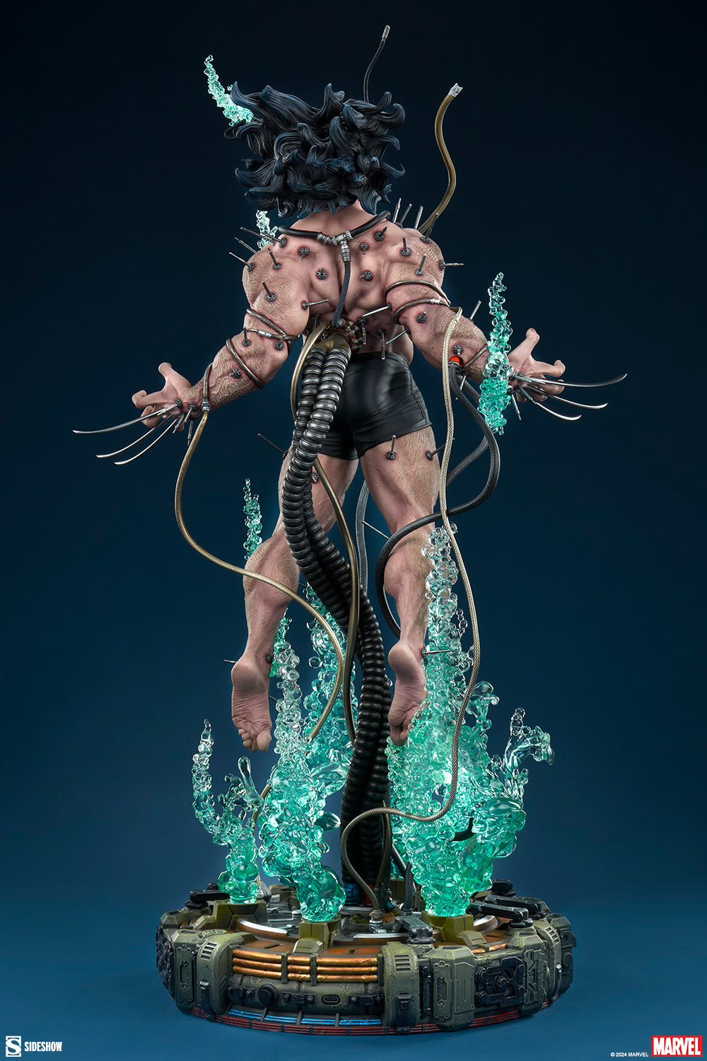 SIDESHOW 這次將羅根正處於 Weapon X 超級士兵人體改造計劃的掙扎樣貌立體化,這項由 K部門主導的實驗利用羅根的再生治癒因子、將亞德曼金屬注入其骨骼,雖然過程極其痛苦,但羅根成功地生存下來,能從手背冒出來的金屬鋼爪也成為近乎無堅不摧的存在。本作高約 64 公分,呈現出羅根全身插滿管線與尖銳澆注口的造型,並利用透感的水流特效、頭髮漂浮的躍動感形塑充分傳達羅根正處於培養槽容器當中的設定。