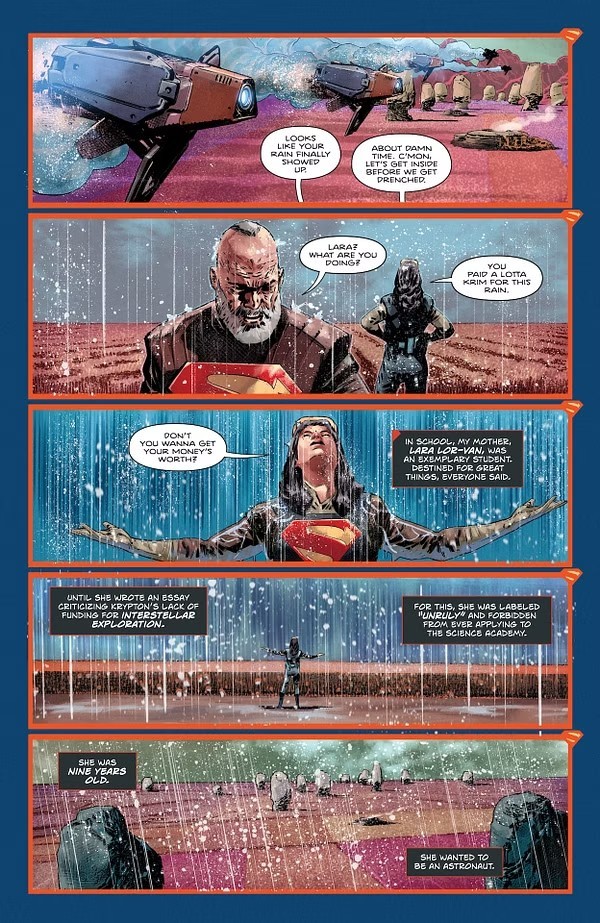 與此同時,故事也將著重描繪於克拉克·肯特——或者我們說凱·艾爾的母親蘿拉·洛爾·馮(Lara Lor-Van)身上,凸顯出因為被禁止加入神職行列,而產生的巨大階級差異,至於喬-艾爾是否還是超人的父親,則是在第一期發行後我們所要觀察的部分。