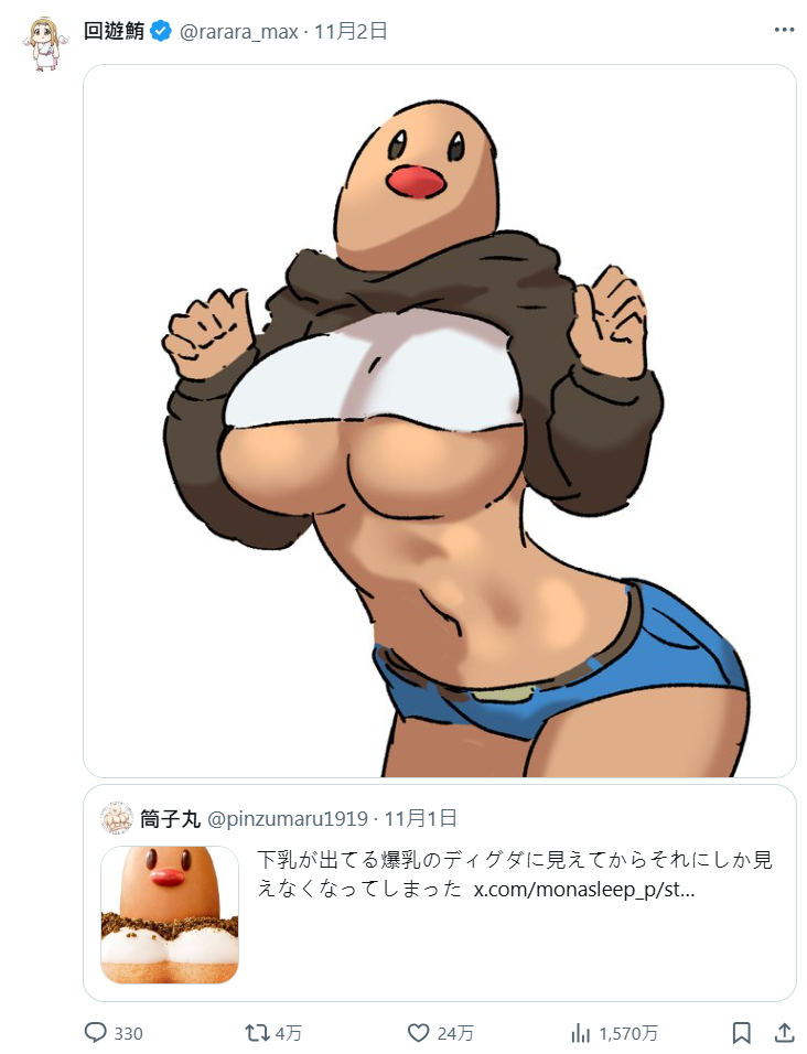 上週甜甜圈專賣店 Mister Donut 日本地區與《寶可夢》宣布每年定番的聖誕節合作活動,其中本次主題寶可夢是「地鼠」來作為招牌,讓不少人意想不到。其中本次的聯名餐點「地鼠波堤」造型給不少人驚喜,釋出商品照後被許多網友紛紛惡搞,原來地鼠是個大胸部存在 ?