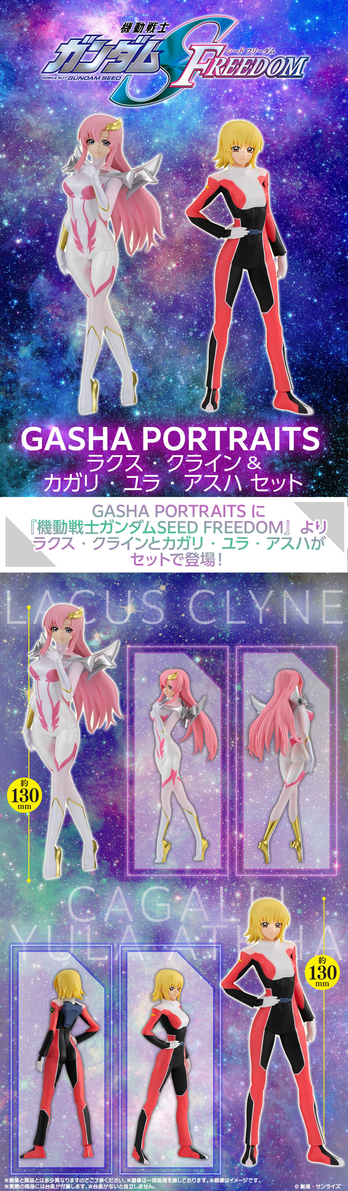 由日本萬代玩具公司轉蛋品牌 GASHAPON 所推出的美少女模型轉蛋『GASHA PORTRAITS』系列,發表了出自《機動戰士鋼彈SEED FREEDOM》的最新商品:「拉克絲·克萊因」、「卡佳里·由拉·阿斯哈」套組,僅在萬代官方網路商店 PREMIUM BANDAI 限定販售,參考售價為 5,500 日圓,預計 2025 年 03 月發售。