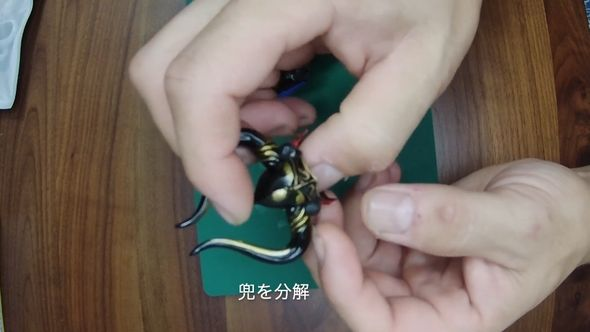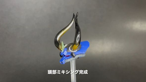 製作成品中最標誌的頭部牛角,他選擇海洋堂販售的武士玩具「激戦 兜コレクション水牛脇立兜」來結合伊弗利特改的頭部,讓其可以完美契合。