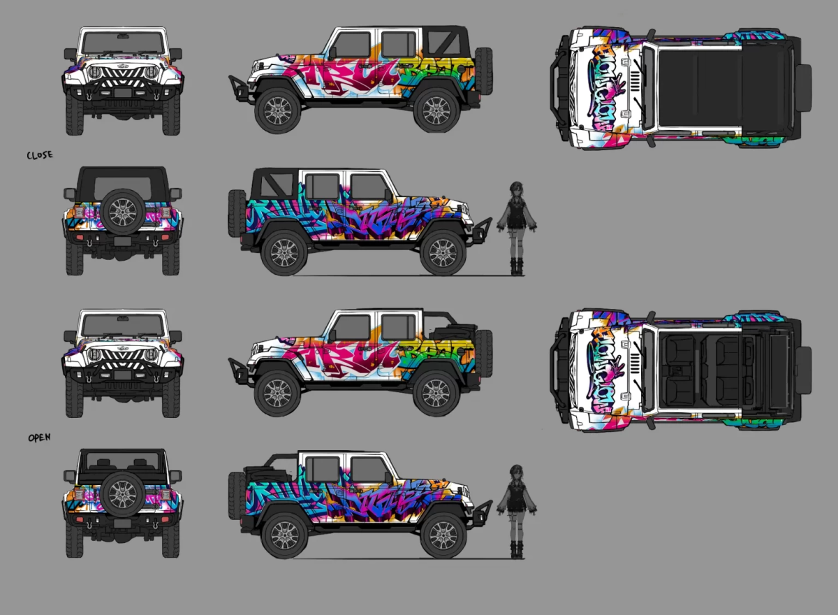 其中五人都喜歡搭乘著千速的愛車『ふぐ太郎』,這輛車負責大部分 FLOW GLOW 的移動和遠征活動,車身足夠大,即使坐五個人也很寬敞。車子經過了許多客製化,例如大排氣量的引擎和後座的開篷機構,讓它更加獨特。