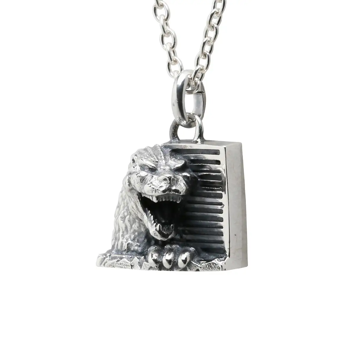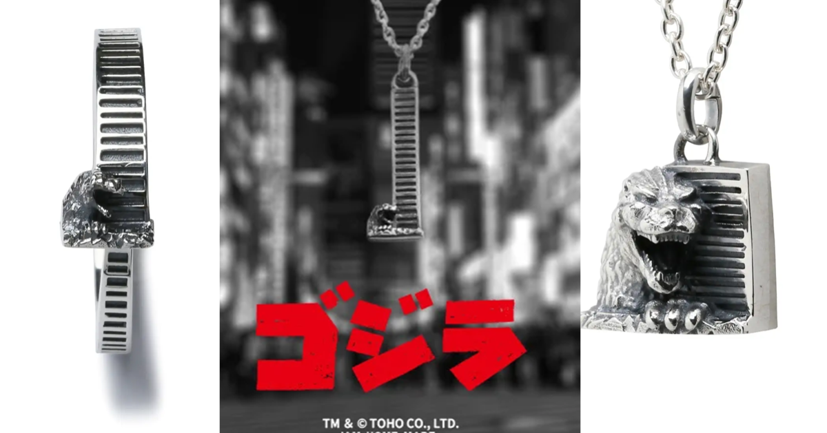 本次聯名以 2015 年設立在東京新宿歌舞伎町的「哥吉拉大樓」為主題,這個在新宿東寶大樓上屹立的哥吉拉大頭,可說是不少人朝聖的地標,這次也就以此打造主題銀飾,展現出哥吉拉在現實登場的氣魄。