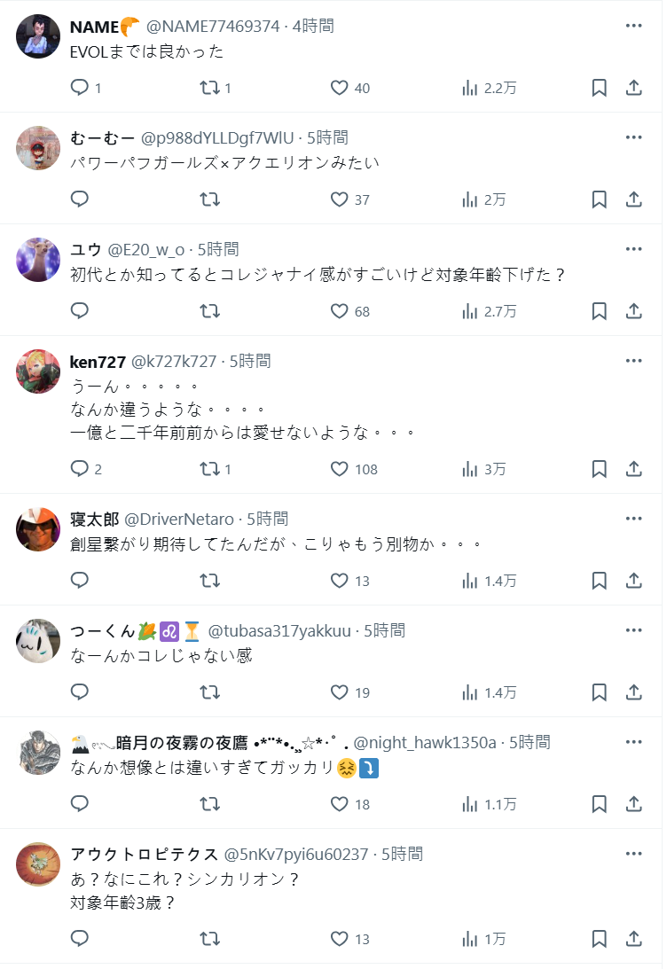 先不論好看與否這種主觀認定,底下網友留言大多認為這感覺似乎是轉向低年齡層的設定,完全感受不到原本《創聖機械天使》系列的風貌,要說這是別部作品都似乎說得通,完全跟期待的截然不同阿...。