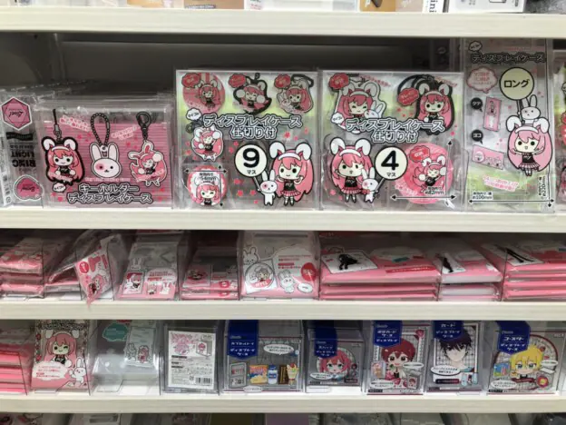 且日本百元商店的動漫周邊商品熱賣,甚至不輸給專門店的水準了,種類相當豐富。無論是應援必備的壓克力立牌、徽章、卡片、貼紙等等,都可以在這裡找到。