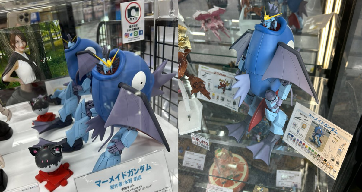 近日日本有推主在量販店友都八喜「ヨドバシ」的展示櫃中,驚見一個奇妙的鋼普拉創作「人魚鋼彈」,趣味的造型與創意頗受網友們稱讚,也讓人好奇這位創作者到底是何方神聖。