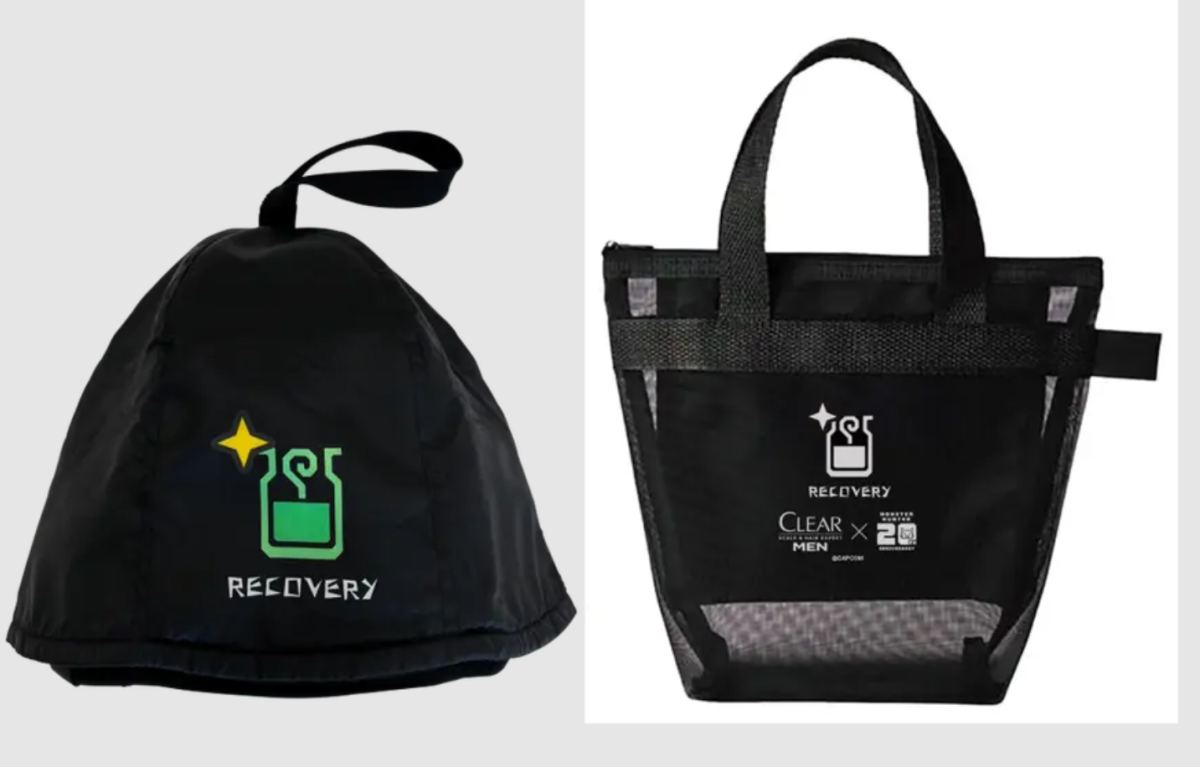 本次限量商品包含以「回復」為主題設計的桑拿帽和桑拿袋。桑拿帽上印有「強效回復藥」的圖標,簡約的設計傳達出在桑拿中恢復元氣的氛圍;而桑拿袋的提把設計則讓人聯想到補給品箱的木質框架。搭配限定設計瓶裝,體驗滿滿的《魔物獵人》世界觀。