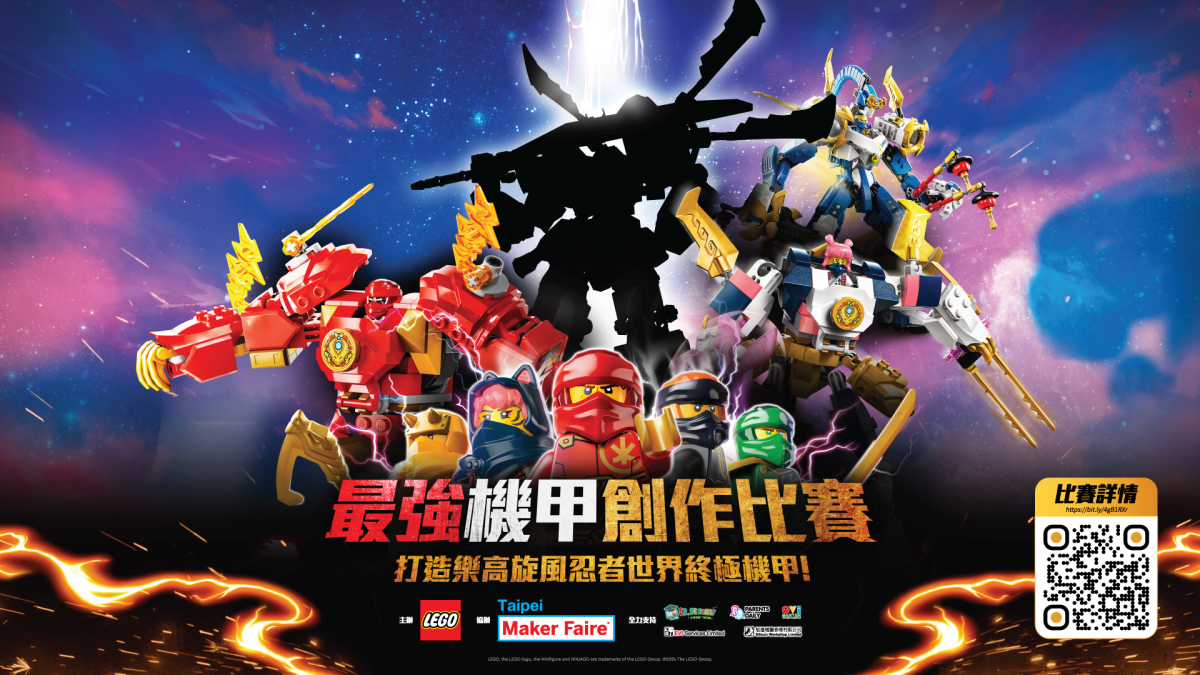 「樂高®旋風忍者®系列」以樂高顆粒結合忍者文化世界觀,推出許多好玩且故事性強的盒組,更推出許多相關的劇情、電影、動畫,一直以來深得不少大小朋友的喜愛,此系列也包含各式忍者、機甲機器人、忍者建築、武器等,透過樂高顆粒結合忍者角色與情節,為大眾打造一個充滿冒險奇遇的樂高®旋風忍者®世界。台灣樂高及香港樂高以「機甲」為主題,即日起至12月31日舉辦「最強機甲創作比賽」,邀請大眾以樂高積木加入不同元素材料,發揮創意創作旋風世界終極機甲!樂高®更首度攜手Maker Faire®Taipei,邀請具豐富經驗的Maker Faire®Taipei評審團隊加入此次創作比賽的評審行列,召集樂高高手及專業創客一起加入樂高®旋風忍者®世界!