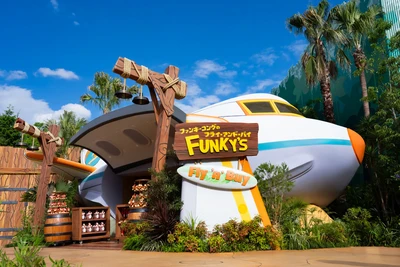 還有一個飛機造型的「Funky Kong's Fly and Buy」的購物區,讓你能在這裡買到專屬的限定周邊。