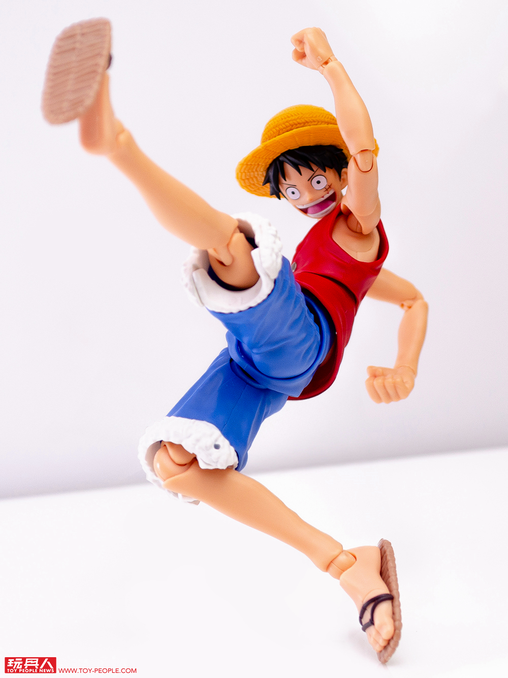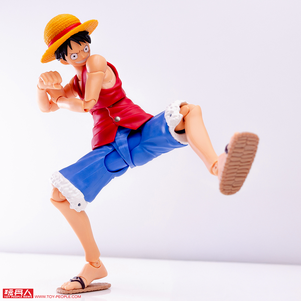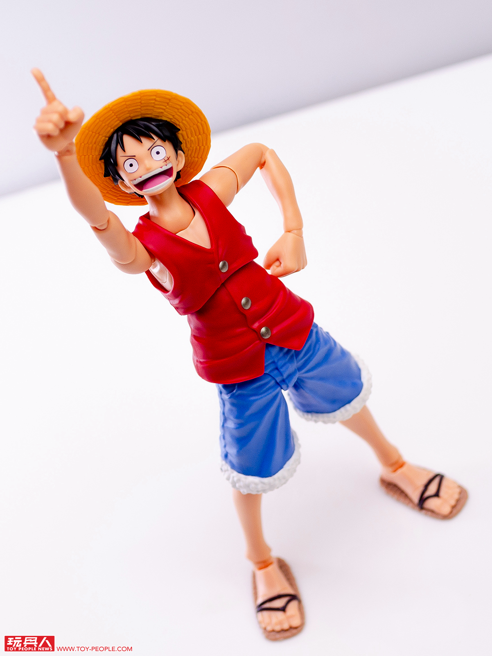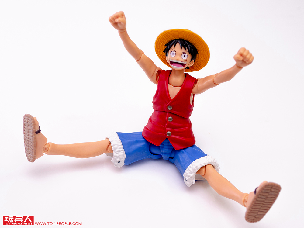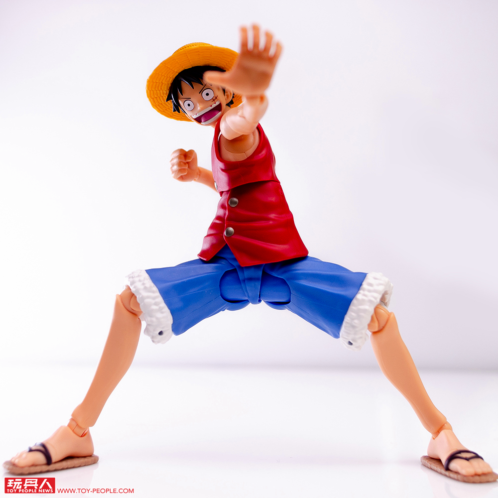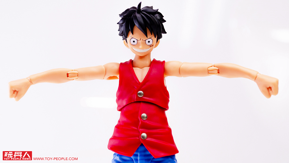 ▼ 活用 S.H.Figuarts 的可動關節設計和多種替換表情、手掌零件,就能把玩出劇中充滿躍動感的各種場景,像是高舉雙手大喊「我要成為航海王!」、滿足的啃肉模樣、施展「橡膠火箭砲」時充滿力量的姿態。
