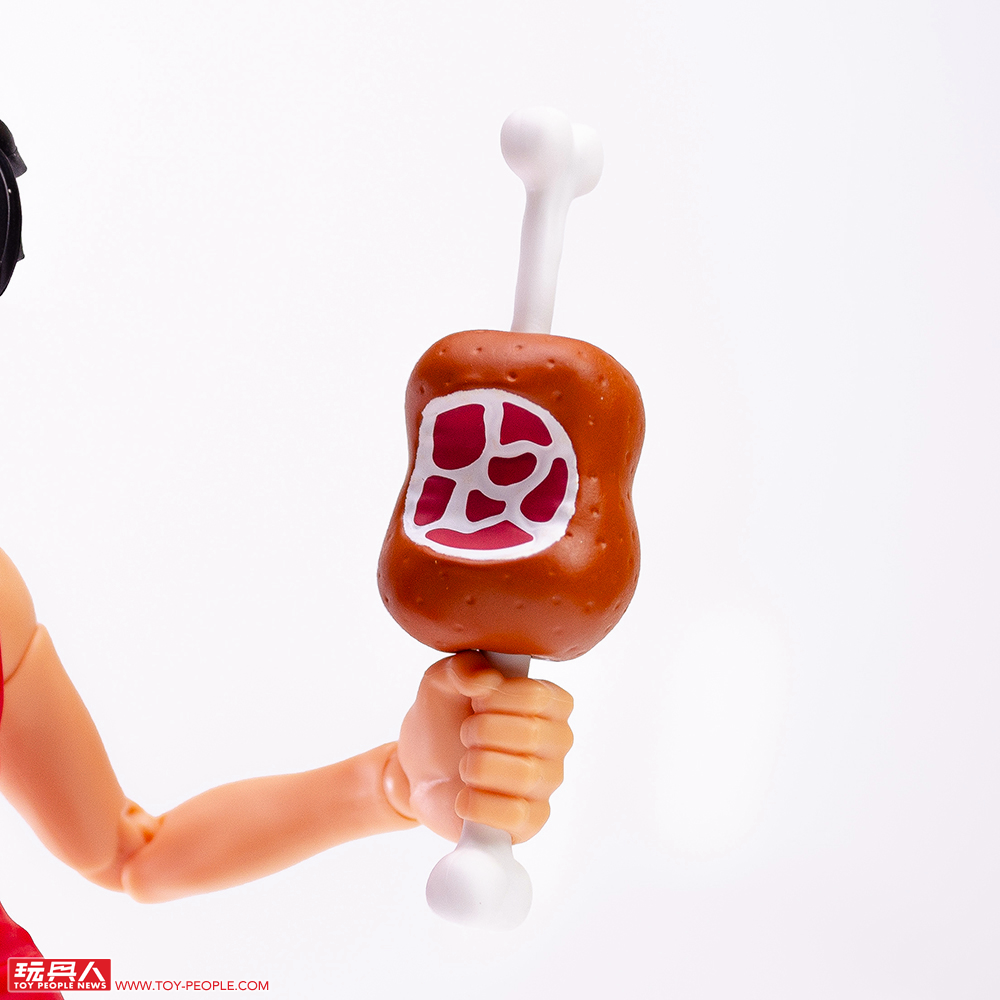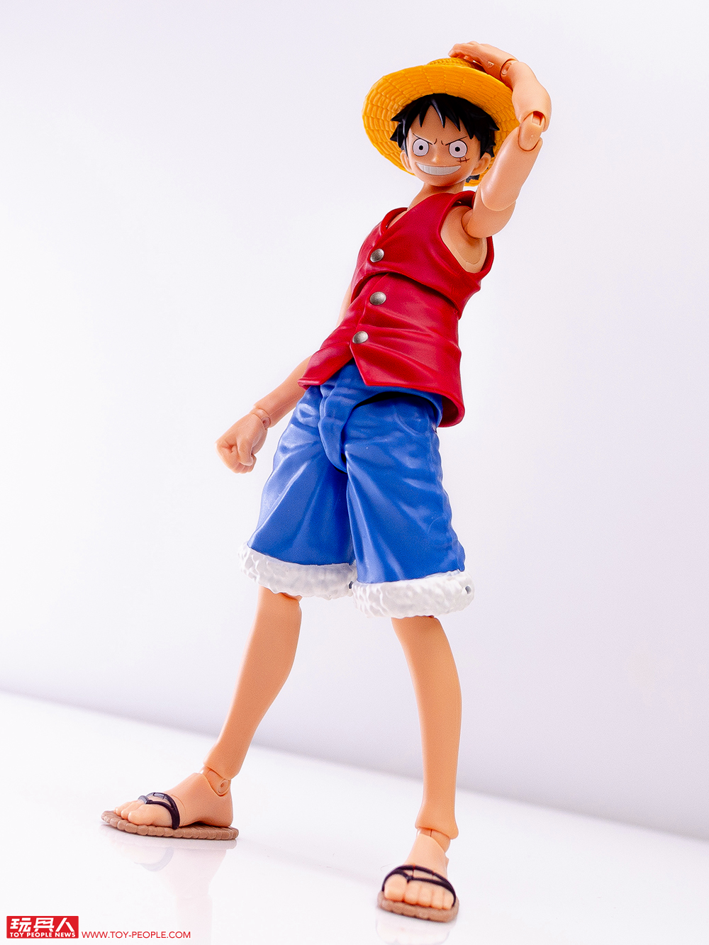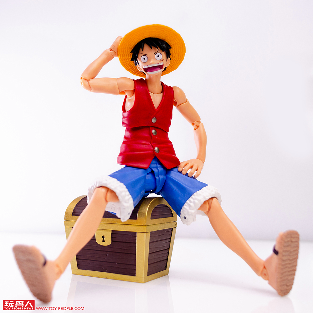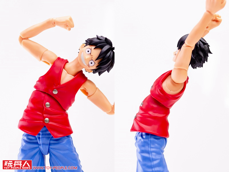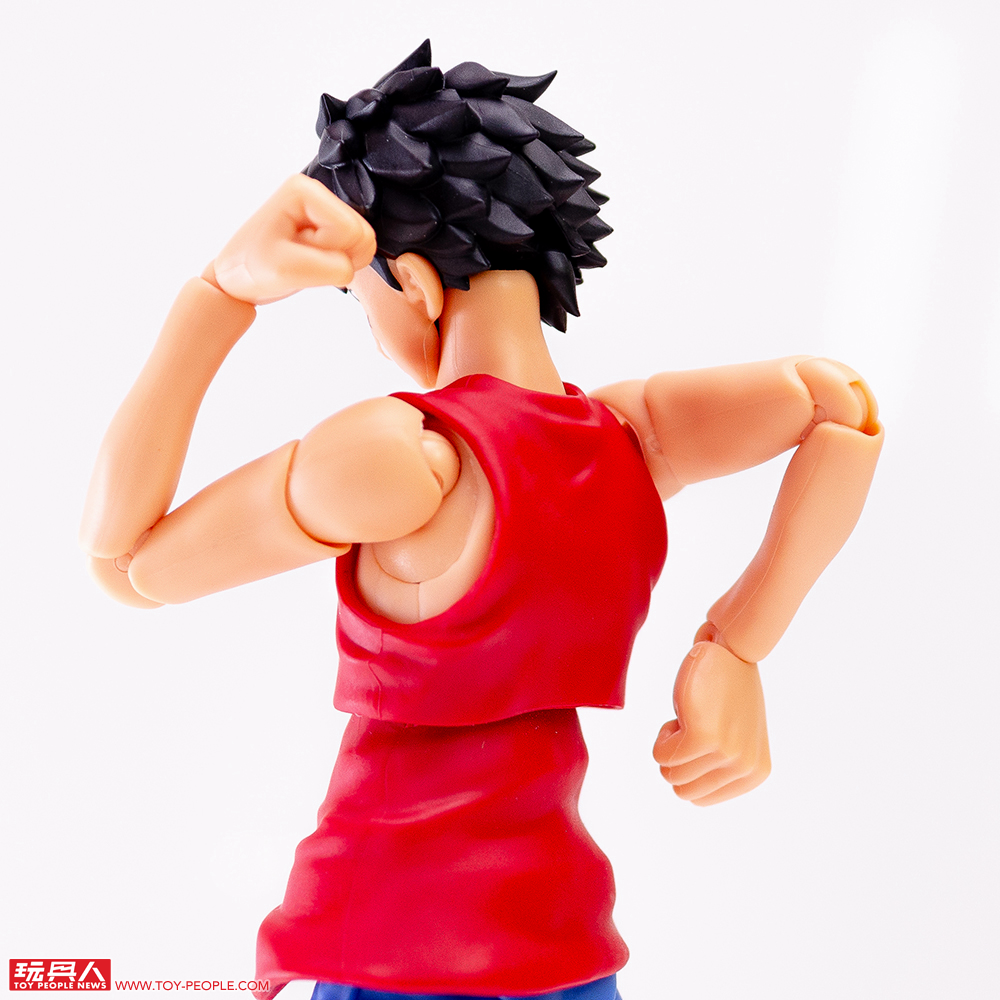 ▼ 活用 S.H.Figuarts 的可動關節設計和多種替換表情、手掌零件,就能把玩出劇中充滿躍動感的各種場景,像是高舉雙手大喊「我要成為航海王!」、滿足的啃肉模樣、施展「橡膠火箭砲」時充滿力量的姿態。