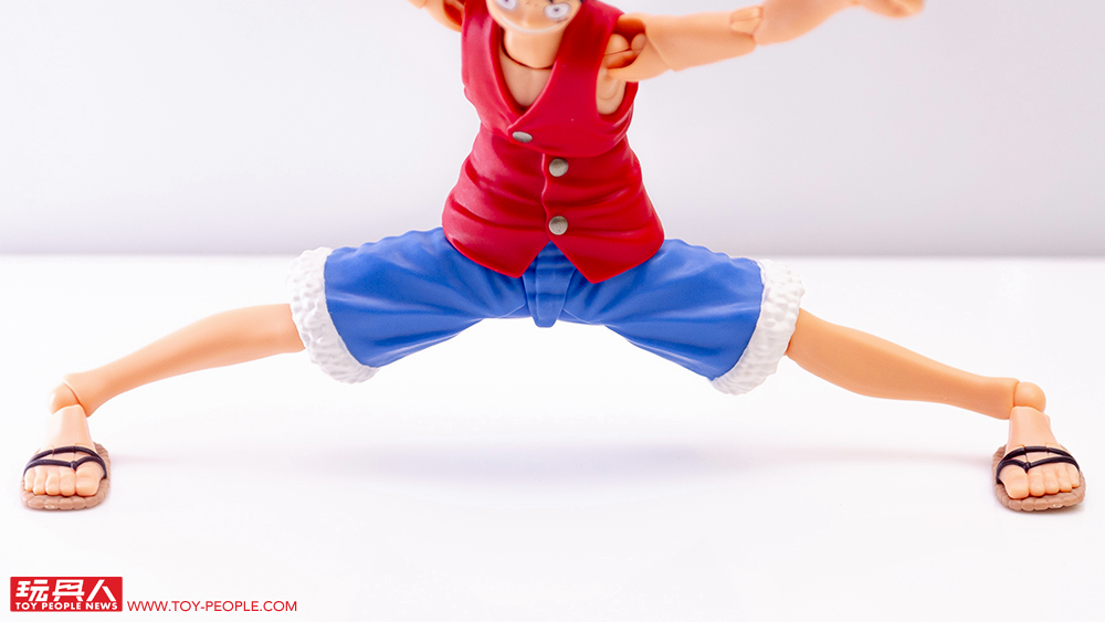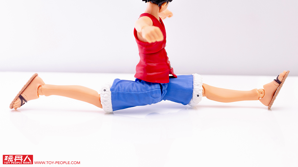 ▼ 整體多軸關節設計基本與魯夫相同,比較不一樣的部分在於髖關節到大腿的設計,軟材質裙子中的髖關節雖不能像魯夫那樣誇張的開腿,但裙子撐開的幅度已經足夠多數動作使用,同時大腿上段也設計水平轉軸來補足雙腿的可動性。