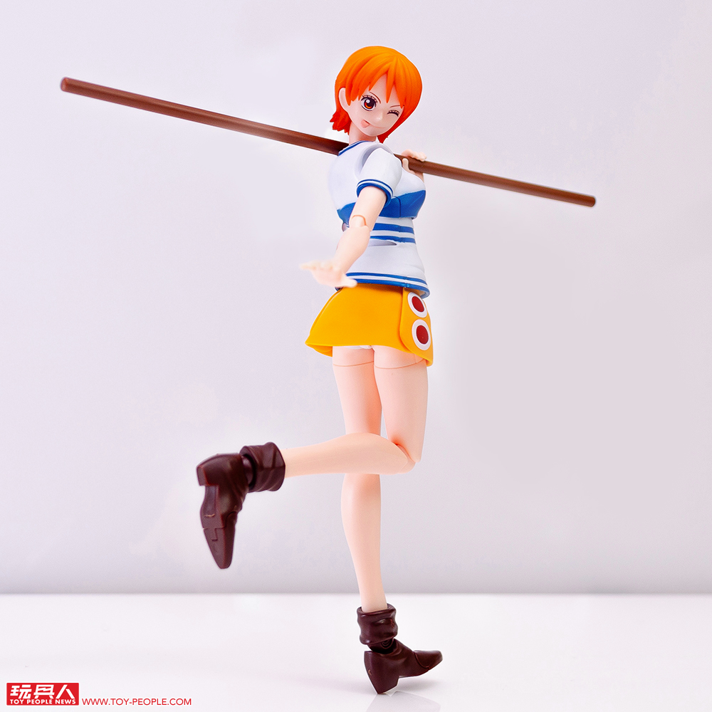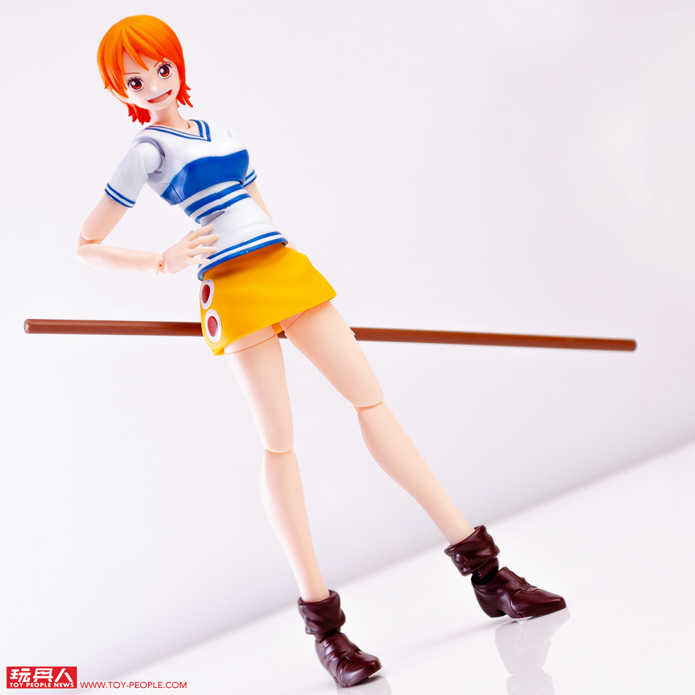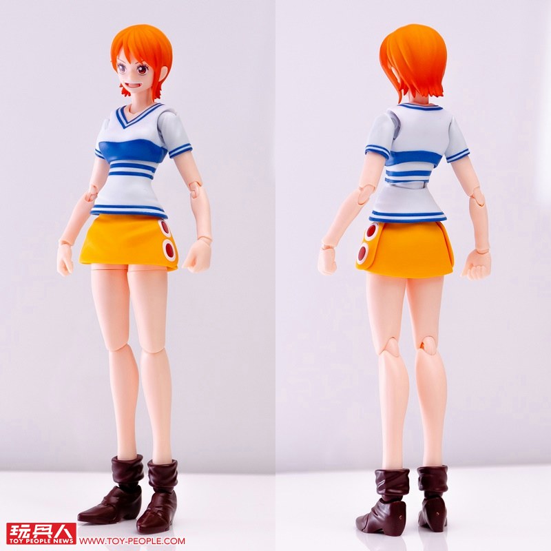 ▼ 造型比例同樣更接近近年的設定,徹底再現娜美初期青澀可愛的氣質,除了不易露出零件破綻的可動分割設計外,裙子零件也特別使用軟材質零件,能夠提升雙腿的可動範圍。