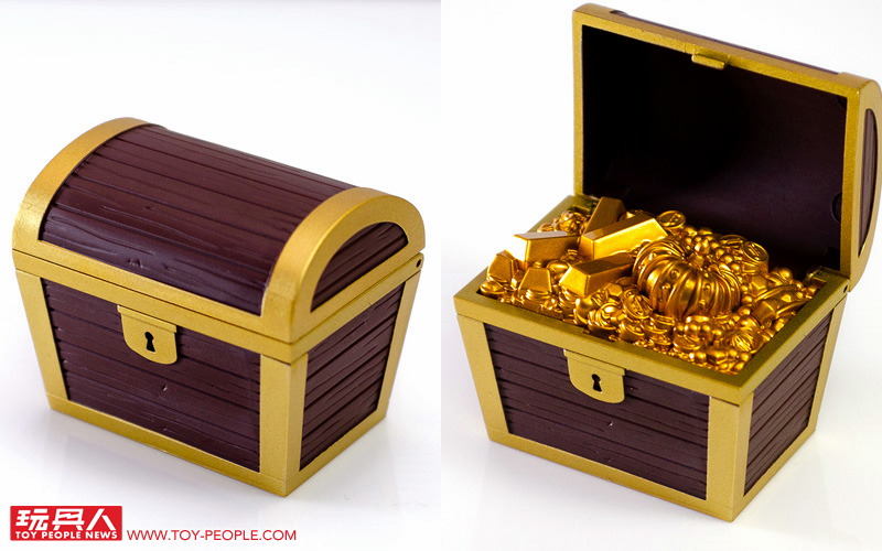 ▼ 寶箱蓋子可開閉,裡面的金銀財寶使用亮眼的金色漆料塗裝。