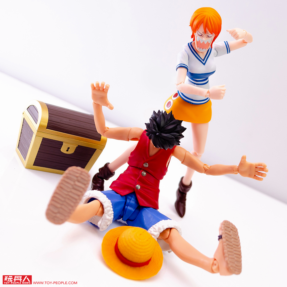 ▼ 搭配能裝備雙手的棍棒、寶箱、另售的魯夫本體,就能把玩出《航海王》初期娜美視錢如命的個性、吐嘈魯夫怪異行為、為娜美戴上草帽的名場景!