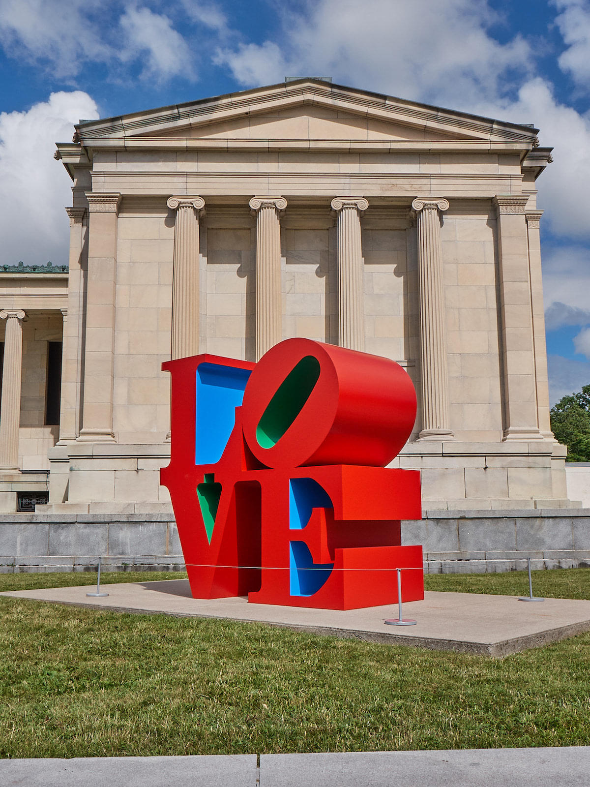 ▼ 2023 年,羅伯特.印第安納的 LOVE 雕塑重返紐約並作為洛克斐勒中心(Rockefeller Center)公開展覽的其中一部分。