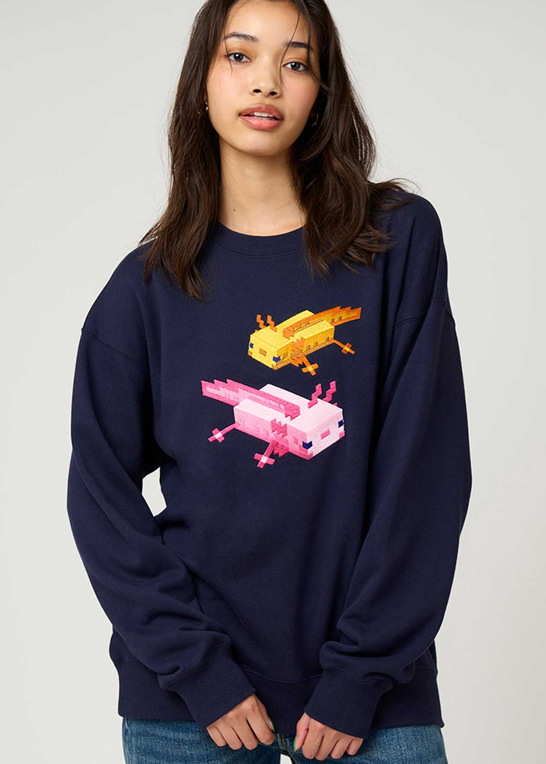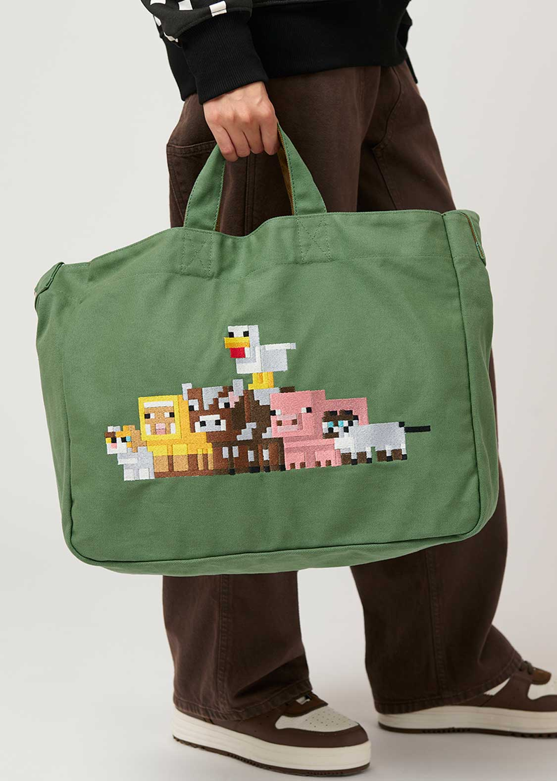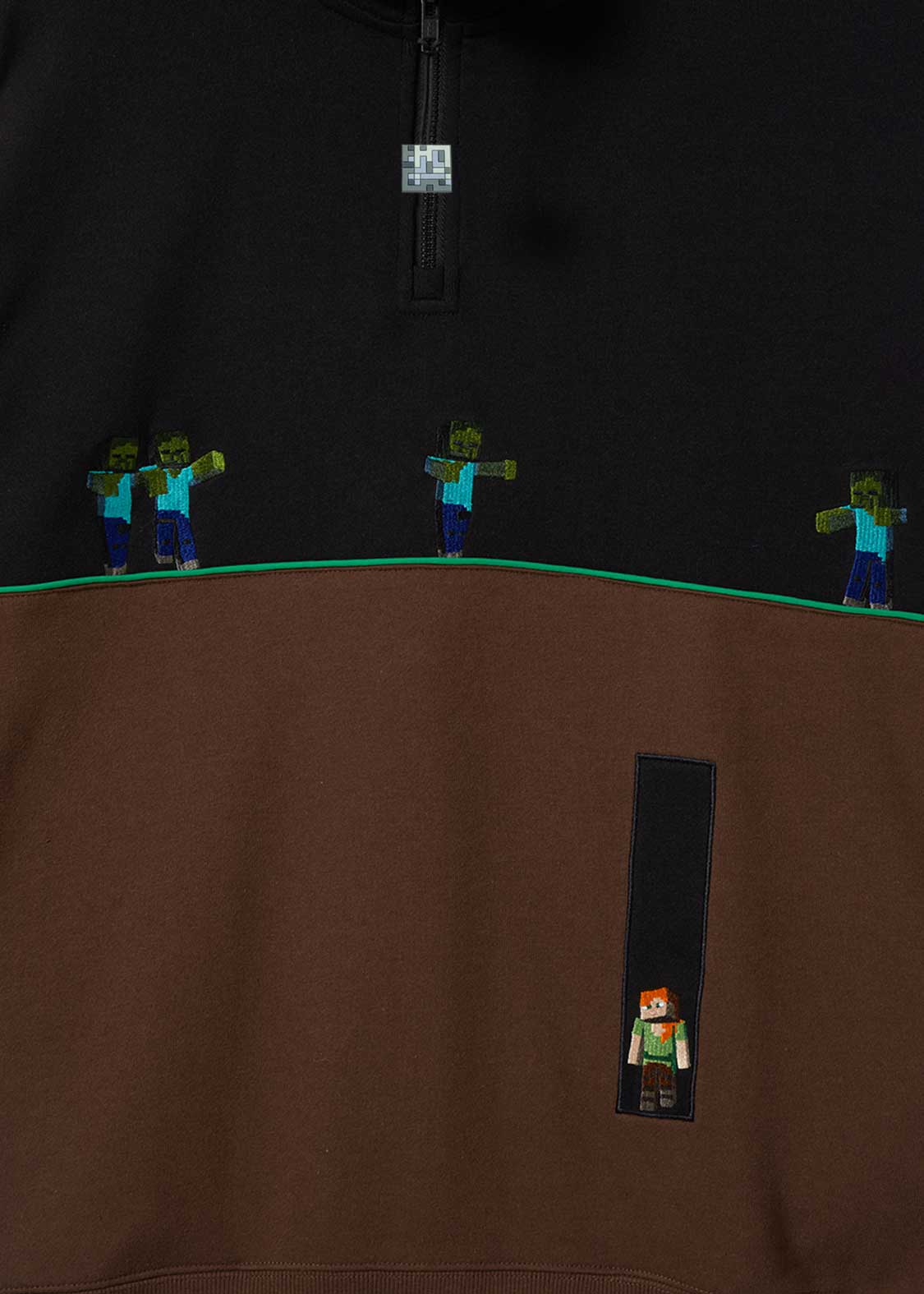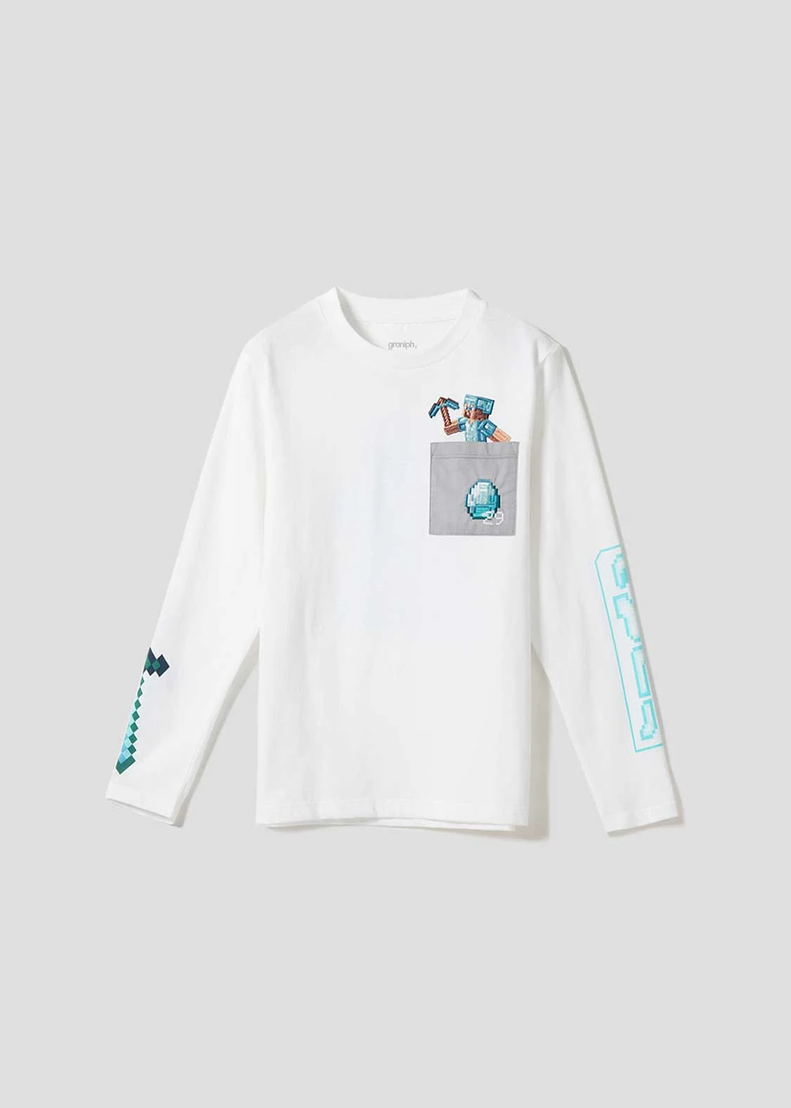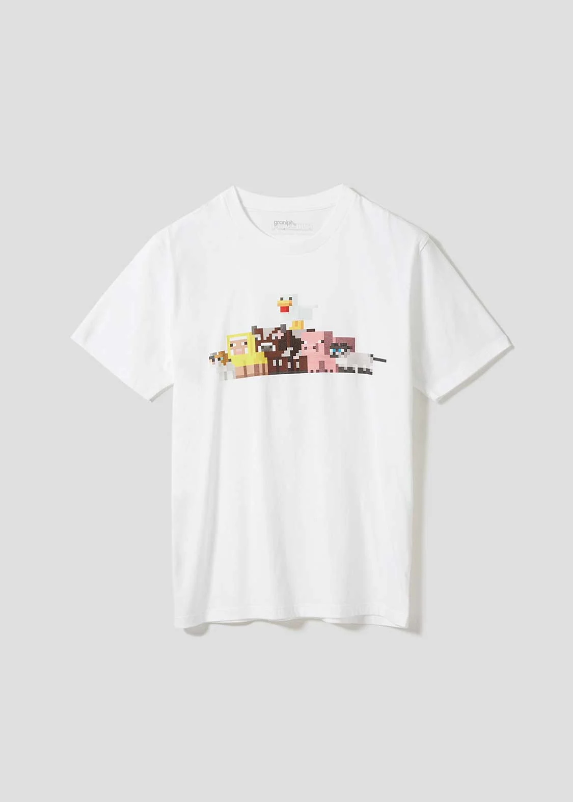 設計服飾廠牌「graniph」本次聯名的服飾商品多變,並不僅限於簡單的短 T 或是外套穿搭,整體設計感也將各作品的世界觀與名場面融入其中。這次以《Minecraft》遊戲中招牌的像素 2D 風貌加入設計,品項更是非常多元,非常值得喜歡的粉絲入手。