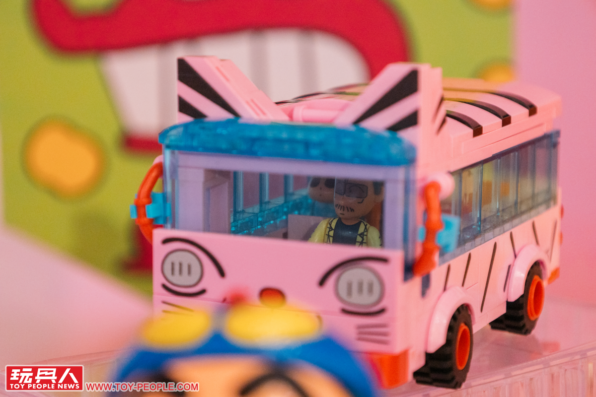 接著是蠟筆小新主題商品區,竟然用貓咪造型的雙葉幼稚園巴士來當展示空間也太犯規了吧!巨可愛。