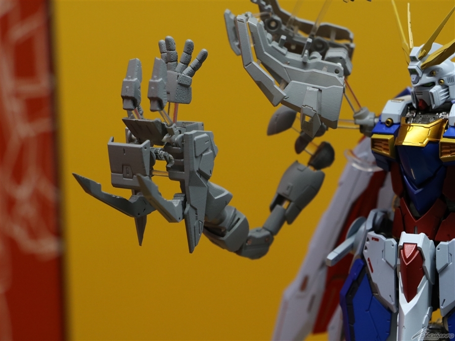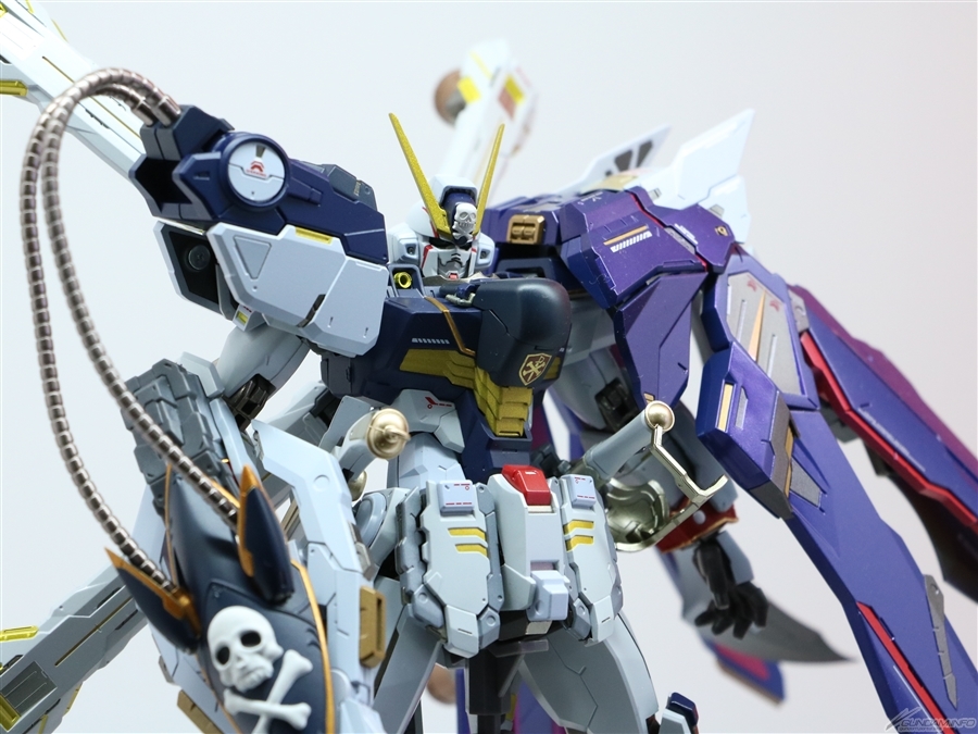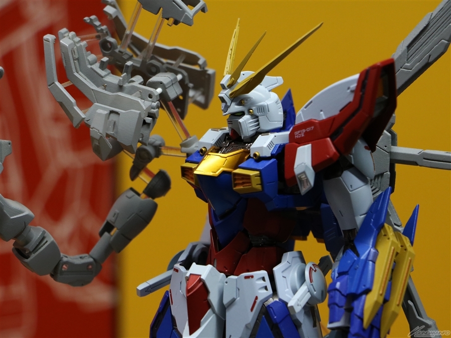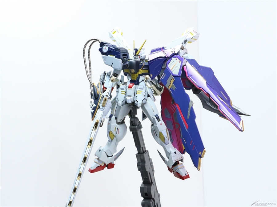 此次展出的新作品包含了全身色彩塗裝翻新的「能天使鋼彈 2025(暫名)」、先前展示過的「神鋼彈」、搭配 Z 鋼彈使用的擴充武裝「超絕 MEGA 巨砲擴充零件組」,以及於《少年ACE》單話完結新作《機動戰士海盜鋼彈 最初的X》登場的新機「海盜鋼彈X-1 半覆式披風」。