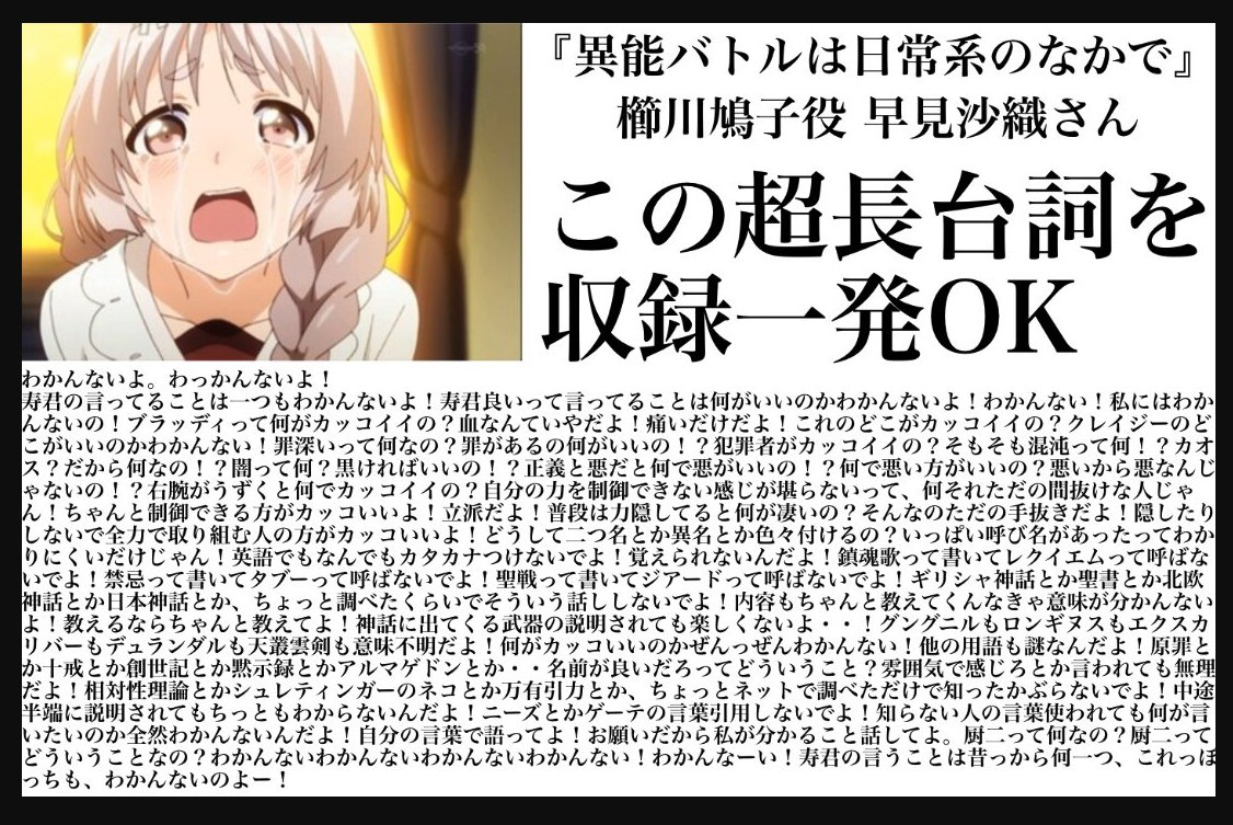 可以看到早見沙織仍然以強烈的情緒還原櫛川鳩子的爆發台詞,長達 2 分鐘不間斷的 Power,十年過去了還是很上手阿 www。