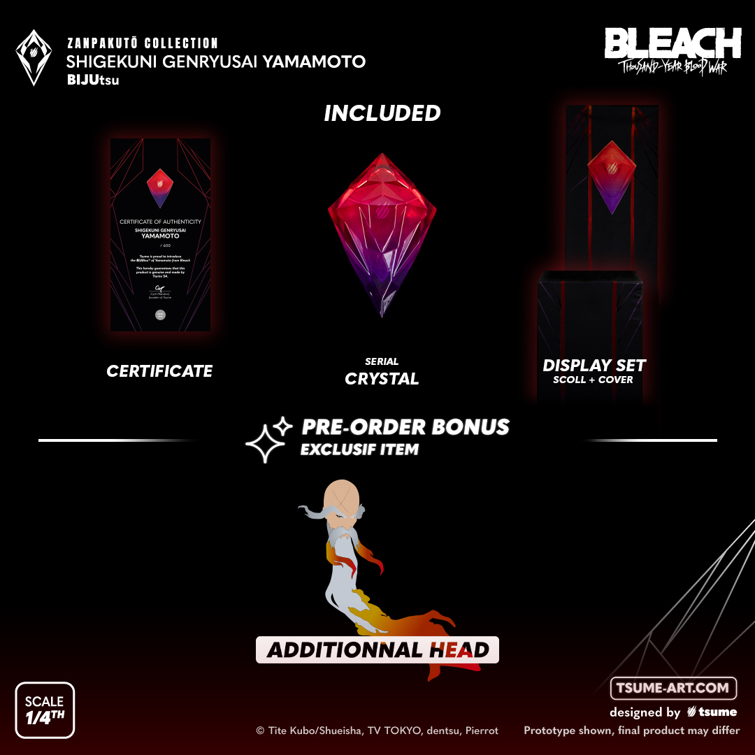 擅長以日本動漫畫角色為題製作高品質雕像的盧森堡造型廠牌 Tsume-Art,於旗下主打宛如美術品質感的「BIJUtsu」收藏系列發表了出自《BLEACH 死神》的最新商品 BIJUtsu - 斬魄刀典藏(ZANPAKUTO COLLECTION)「山本元柳齋重國」1/4 比例全身雕像!全球限定 600 體,預計 2025 年第二季開始發貨,建議售價為 749 歐元。