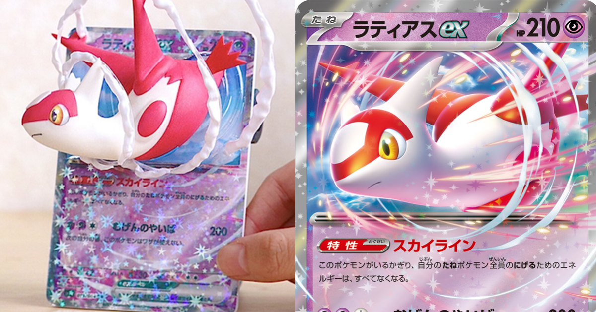 他選擇自己非常喜愛的寶可夢「拉帝亞斯」,採用「拉帝亞斯 EX」的卡牌圖,將其用黏土捏出還原的樣貌,並製作出圍繞在身邊的衝刺特效,並特別製作一張同樣的卡牌但沒有卡圖的姿態,讓人感覺像是從卡牌中爆誕的效果,視覺上非常出色。