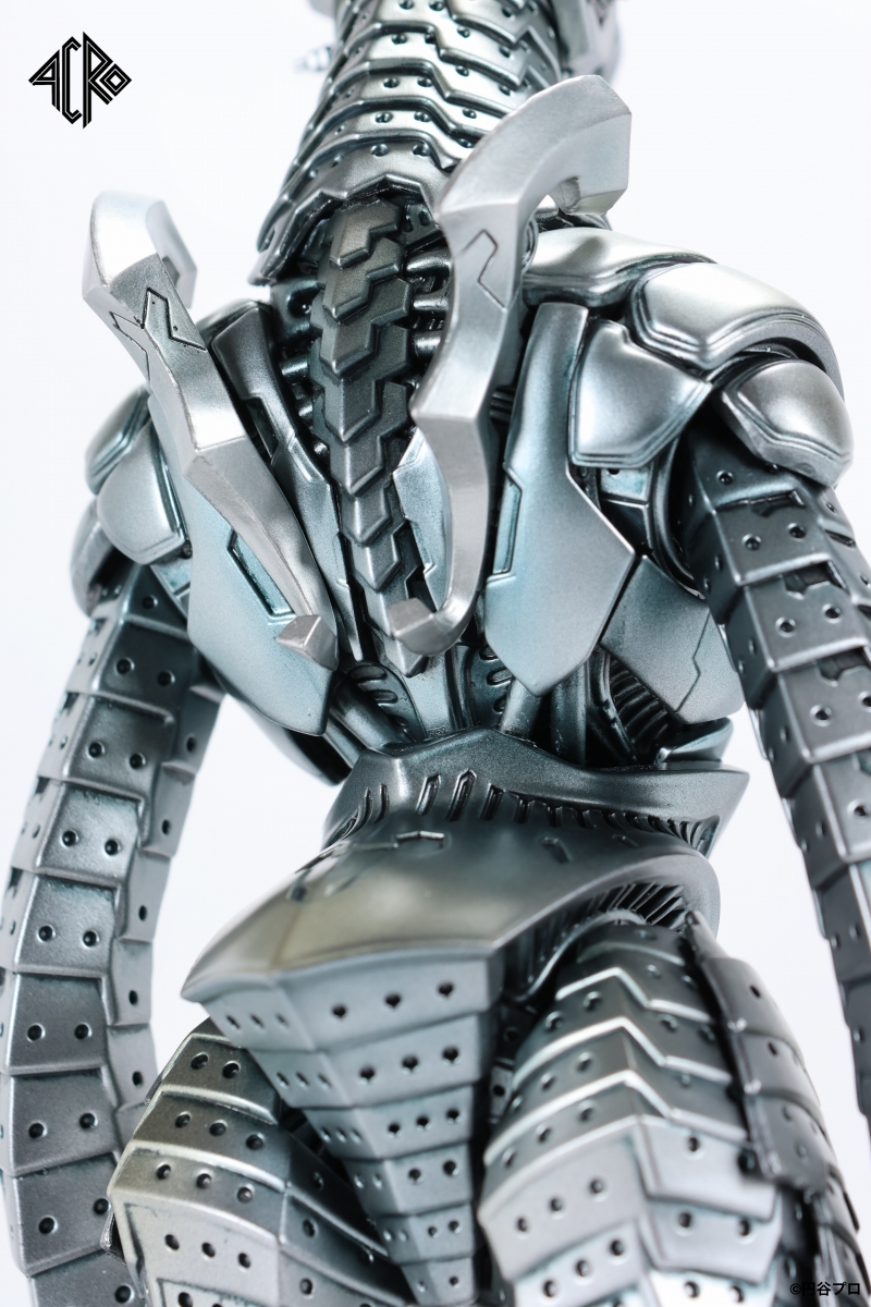 將竹谷隆之老師的造型設計商業化的新系列「KRS × TAKEYA」,首彈推出「溫達姆」軟膠模型,由原型師藤本圭紀擔任原型製作、竹谷隆之負責原型監修,尺寸全高約 30 公分,將膠囊怪獸溫達姆注入竹谷老師的風格,在冷兵器的嚴酷性與可愛感之間創造了微妙的平衡,採用 ACRO 獨有的「U-VINYL技術」製作燒製金屬模具,徹底再現極具金屬質感、層層堆疊的洞洞裝甲;凹凸有致的獨特的線條呈現出特殊的性感,敬請享受這款充滿張力與衝突感的魅力之作!