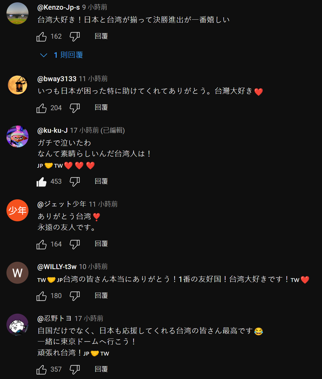 影片留言處也湧現許多日本網友,對於台灣球迷熱情的支持,真的非常感謝,真的是台日友好的真實展現,也希望台灣球隊加油,要一起前進東京巨蛋在複賽打出好成績。