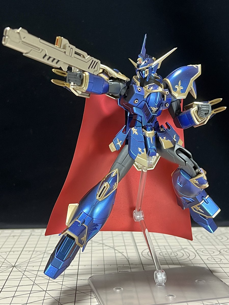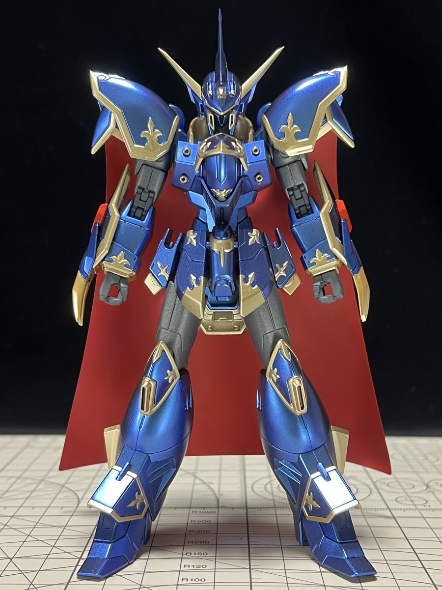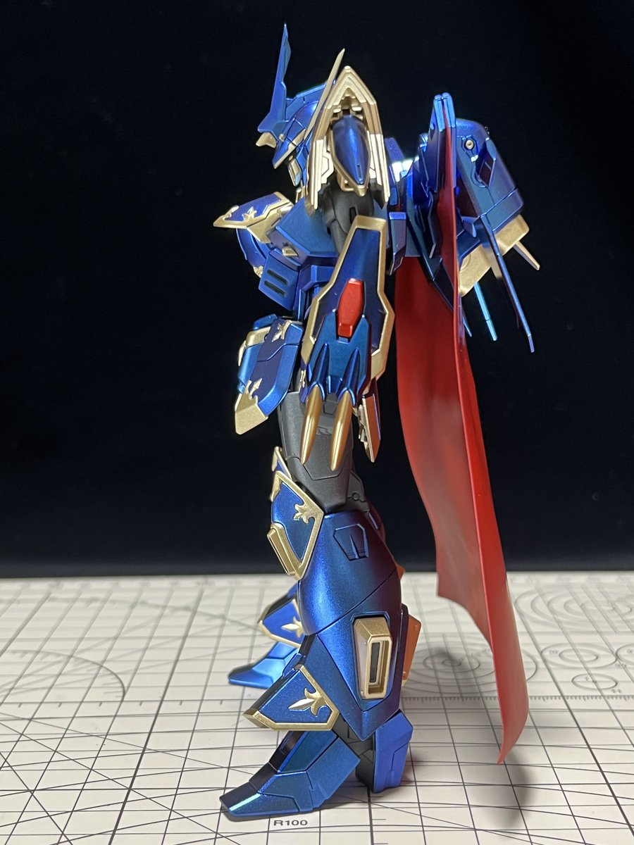 採用勇者鬥惡龍中羅德紋章的配色來打造,雖然卸下原本的龍騎兵系統機翼,改為裝上其他小隊機的披風造型,將原有的白色機甲塗裝成寶藍色,展現出勇者的味道。