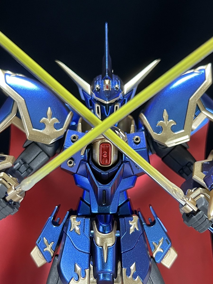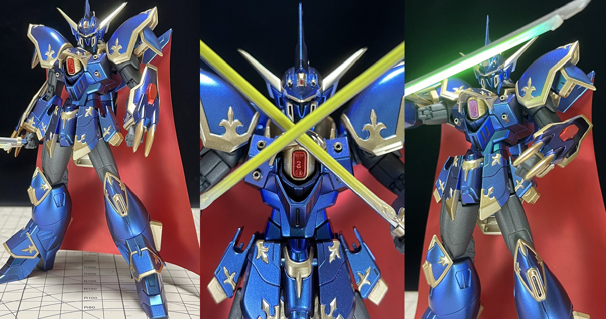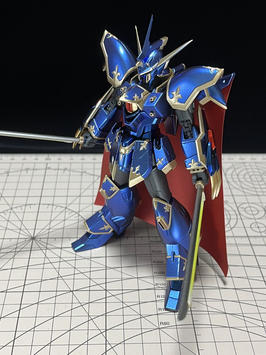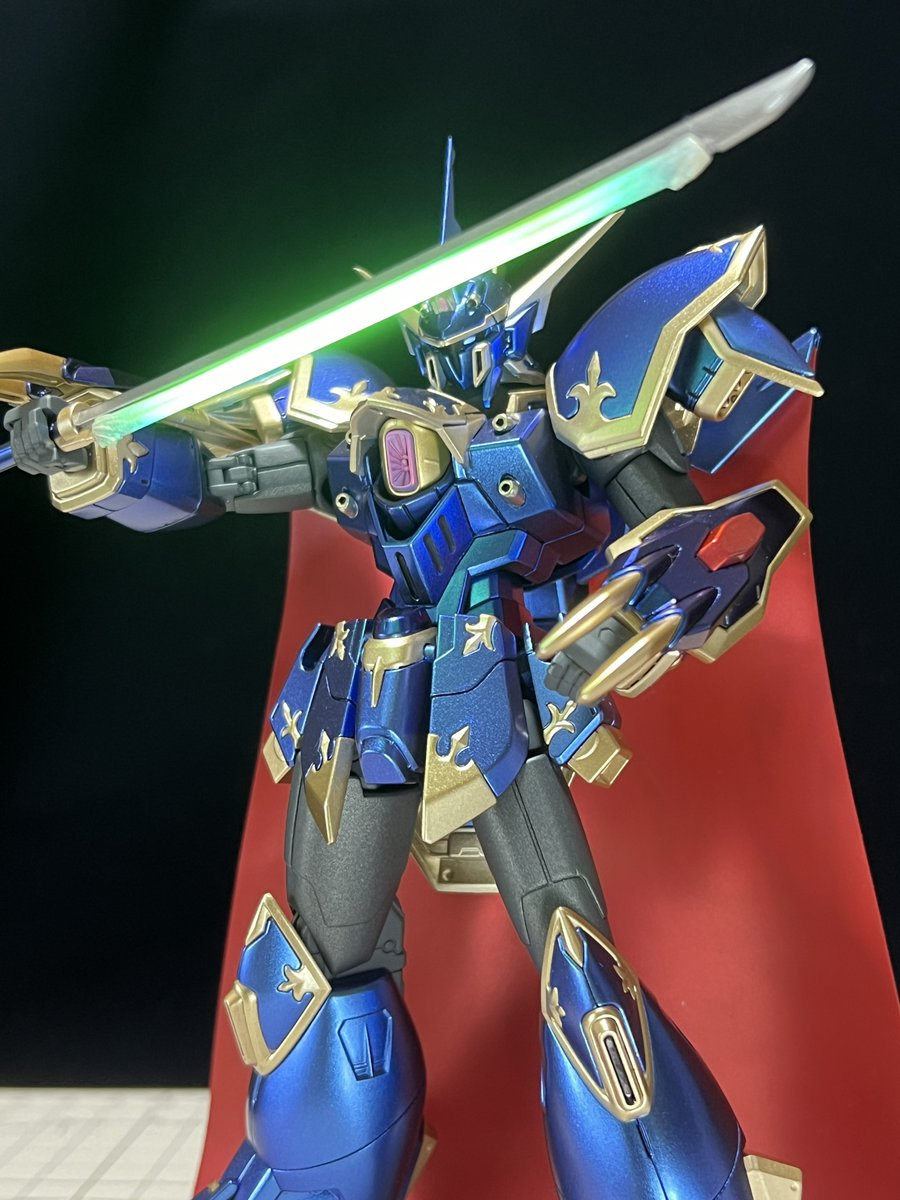 採用勇者鬥惡龍中羅德紋章的配色來打造,雖然卸下原本的龍騎兵系統機翼,改為裝上其他小隊機的披風造型,將原有的白色機甲塗裝成寶藍色,展現出勇者的味道。