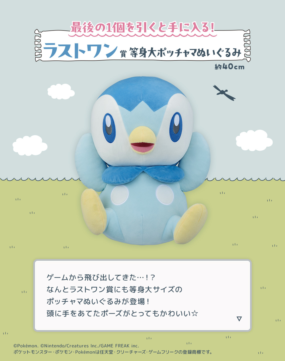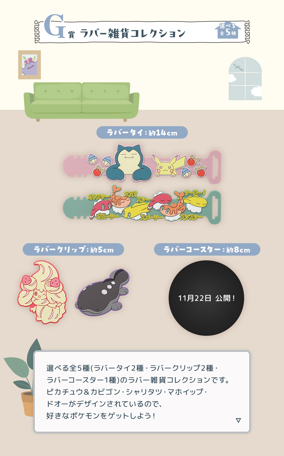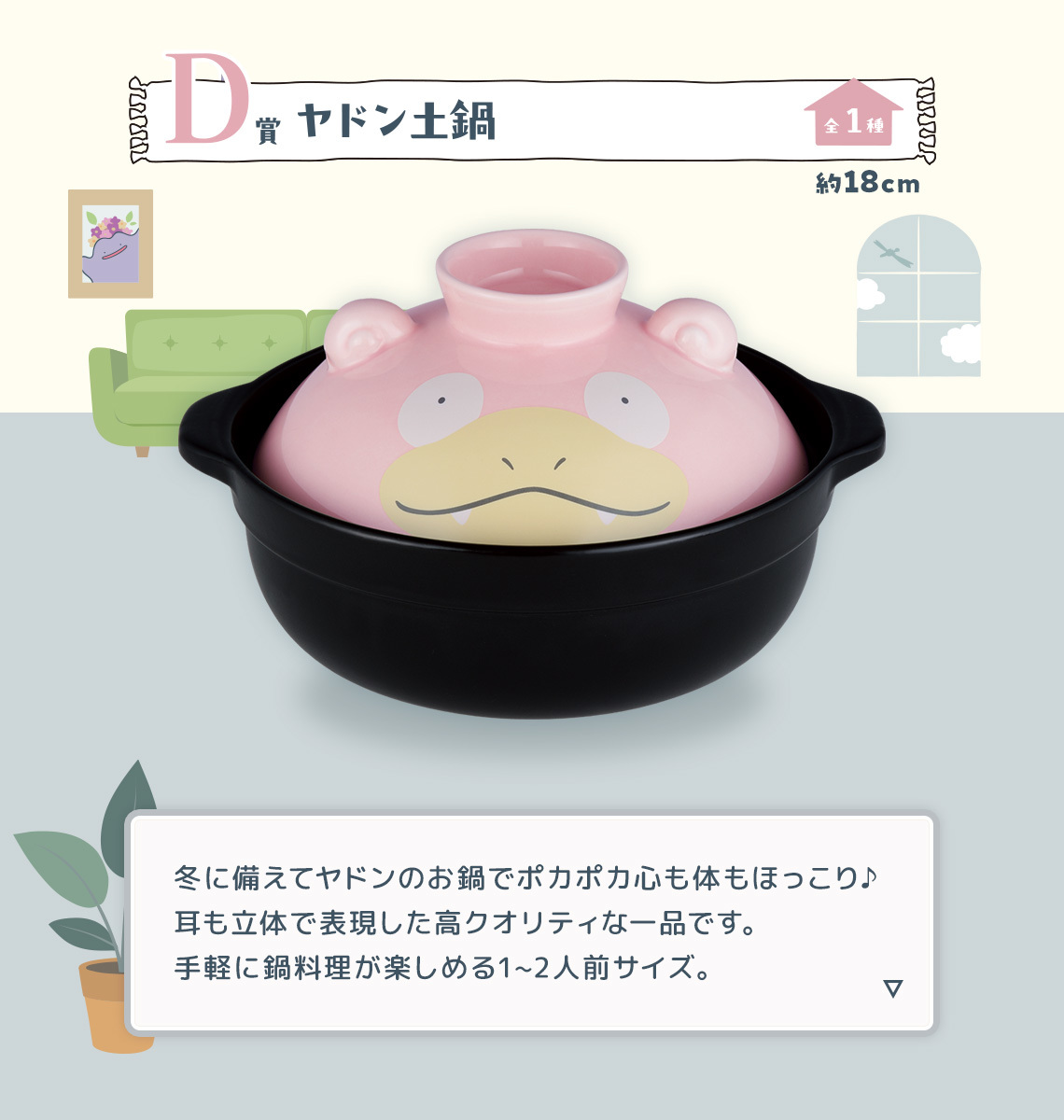 「2024 Pokemon Collection賞 ~Welcome to the Pokémon House~」,以繽紛可愛的寶可夢之家為主題,推出 A ~ I 賞 + Last One賞、雙重中獎機會等不同級別的豐富獎品~收錄有1:1 真實比例的 40 公分 A賞「等身大皮卡丘布偶」,60公分的 B賞「百變怪 BIG 麻糬靠枕」、 C賞「布撥支架毛絨玩具」、 D賞「呆呆獸土鍋」,以及 E賞「波加曼/新葉喵披毯」、F賞「抽繩包」、G賞「橡膠收藏系列」、H賞「伊布家族陶瓷小盤」、I賞「手帕」,以及Last One獎的「等身大波加曼布偶」,將家裡布置成滿滿寶可夢的寶可夢之家吧!