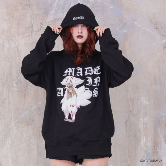 這次一樣採用 QOOZA 招牌的黑暗系風格,搭配《來自深淵》中高人氣的奈奈祈 & 法普妲作為靈感,設計出聯名服裝系列,包含 : 薄長 T、帽 T、毛絨側背包與法普妲帽子,設計風格也非常適合女性穿搭,有著截然不同的味道。