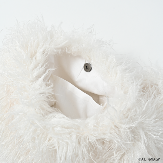 整體背包以法普妲的毛茸茸的外觀呈現,包包配有法普妲的手部吊飾,可拆卸並可固定在其他物品上。