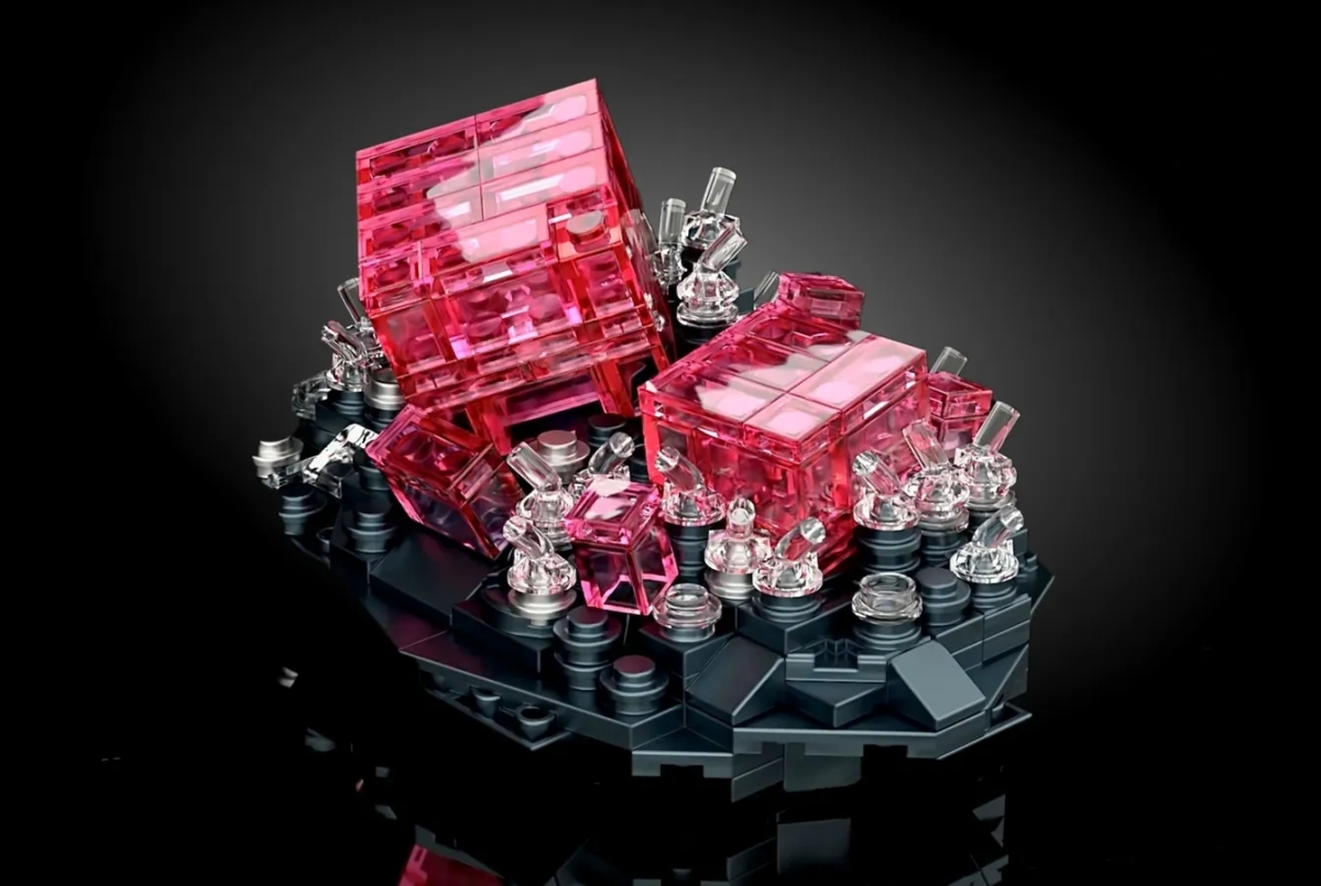 這一款礦石展示作品能夠追溯到 2020 年,當時 ddf72 也以此為題創作了礦石的樂高模型,雖然達到一萬票的支持但沒有通過審核,ddf72 表示當時他在部分採用了非正統拼搭技術,且有許多件也確實需要重新修改配色等;這次,ddf72 終於等到樂高生產了他所需要的零件,除了重新修改了礦石的拼法、設計結構之外,他還製作了一個俐落且漂亮的專屬展示架,讓作品的完整性大幅提高!