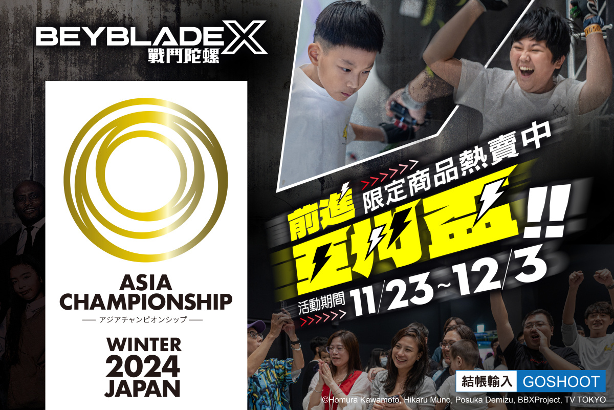 日本玩具商 TAKARA TOMY 於 2023 年推出經典競技玩具『戰鬥陀螺』系列最新第 4 世代商品「戰鬥陀螺X」後,吸引了不少玩過歷代戰鬥陀螺的老手、初次接觸的新手一同再次掀起遊玩熱潮。玩具人不僅曾介紹過多款「戰鬥陀螺X」新產品、淺談了戰鬥陀螺系列的歷史發展,甚至還在內部辦過小小的戰鬥陀螺比賽,果然這套核心玩法無論到了哪個世代都讓人熱血澎湃。說到比賽,台灣官方舉辦的 G1 全國大賽才在今年 10 月落幕,從數千名選手中脫穎而出的兩位陀螺鬥士即將代表台灣前往日本挑戰亞州盃賽事,與各國好手同台較勁。為此官方也舉行了限時特賣活動,要一同為台灣小將加油!