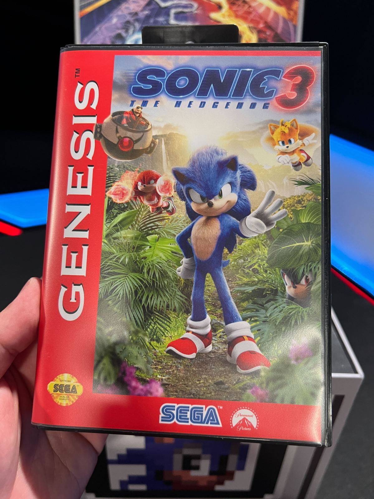 為了加強即將在2024年12月上映的《音速小子3》(Sonic the Hedgehog 3),派拉蒙影業除了是連發多支預告與電影海報之外,近期外媒《IGN》也收到了一份從電影公司寄來,並且印著主角索尼克,以及正式登場於本片的「夏特」封面的Mega Drive遊戲卡匣。