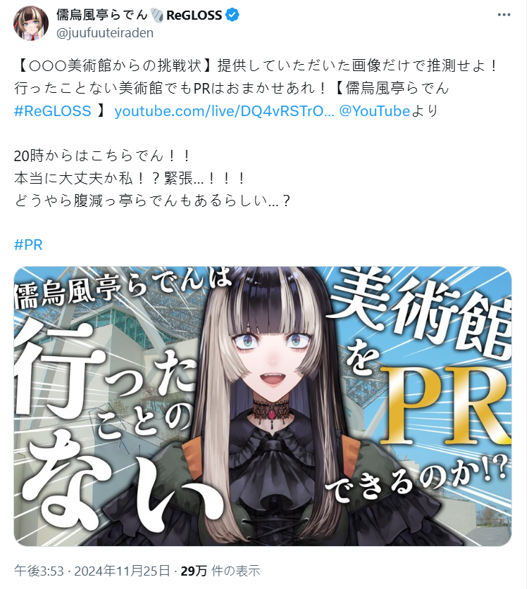事實上開播前儒烏風亭螺鈿就有提到本次是合作宣傳,還打上「OOO美術館」,雖說螺鈿介紹相關的地方不少,這次居然是跟台灣合作,還是讓不少人看到來自台灣的優秀美術單位。