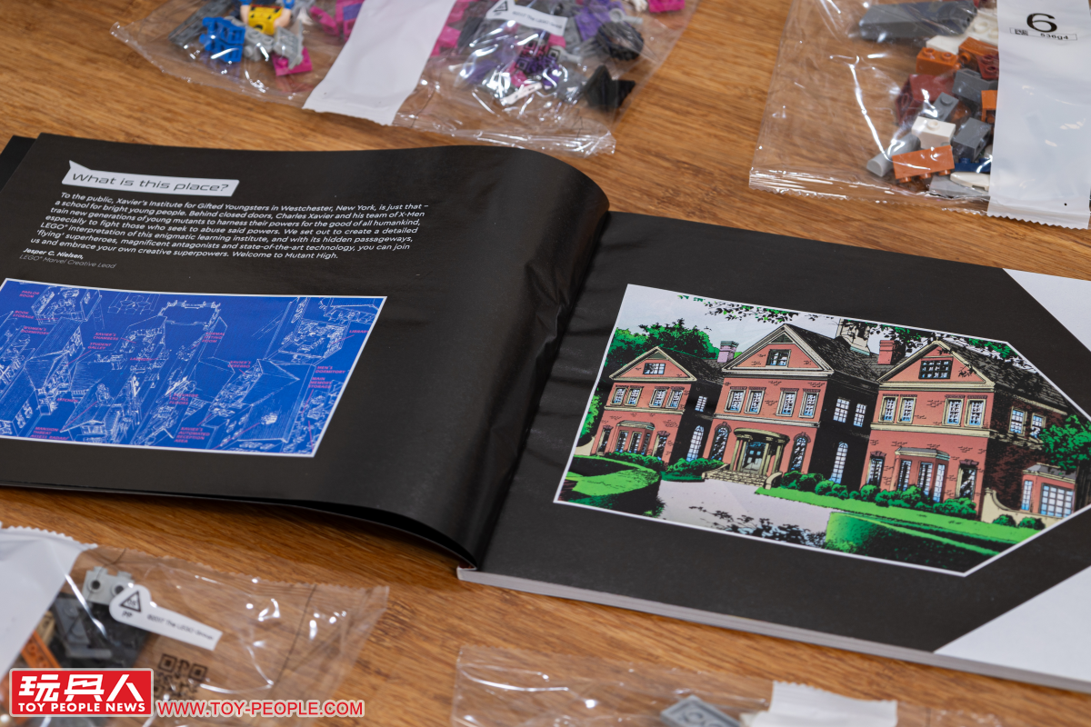 ▼ 說明書開篇介紹了 X學院在 MARVEL 漫畫當中的定位、背景設定,以及這款樂高 X學院的內部細節、設施等。下圖左邊藍色的透視圖很讚啊~