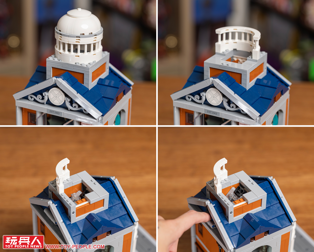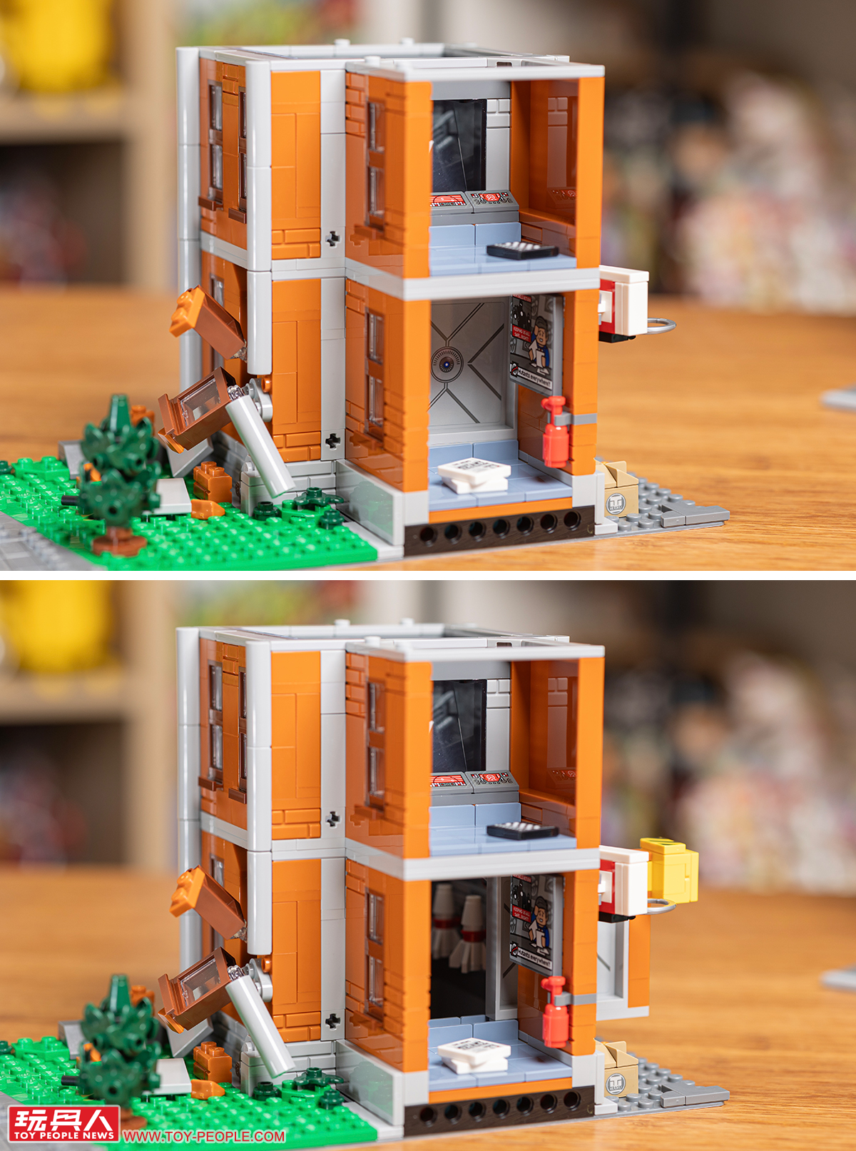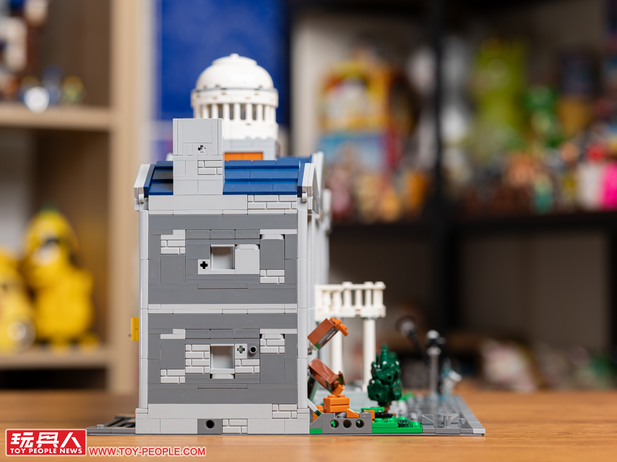 ▼ 轉了一圈也能發現這座建築在許多地方都設置了具備十字插孔的零件,方便搭配透明件、人偶展現生動戰鬥場面,其做法就跟復仇者大廈極為類似。