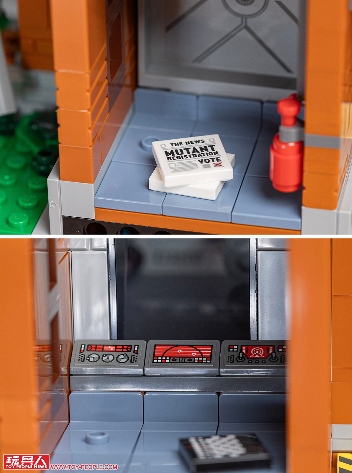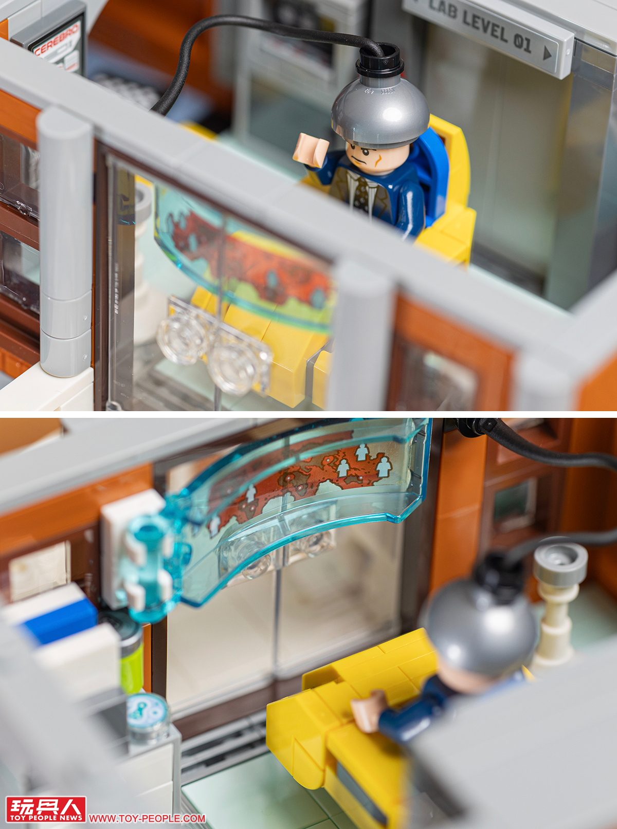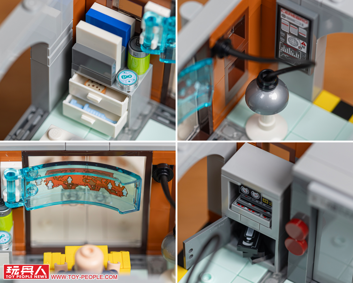 ▼ 轉了一圈也能發現這座建築在許多地方都設置了具備十字插孔的零件,方便搭配透明件、人偶展現生動戰鬥場面,其做法就跟復仇者大廈極為類似。