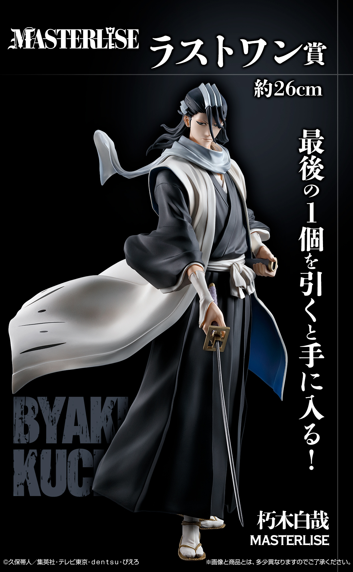 本次的「一番賞 BLEACH 死神 千年血戰篇 Stirring Souls vol.2」,目前公開了四款角色模型,為高階造型「MASTERLISE」系列打造,細膩再現精緻的服裝細節,並以約 25 公分的尺寸呈現,分別為:A賞「黑崎一護‐體內的虛‐」、B賞「市丸銀」、C賞「更木劍八」以及最後賞的「朽木白哉」,將角色們令人印象深刻的表情、端莊的外觀和服裝細節帥氣立體化!更多精彩的獎品將於後續公開。